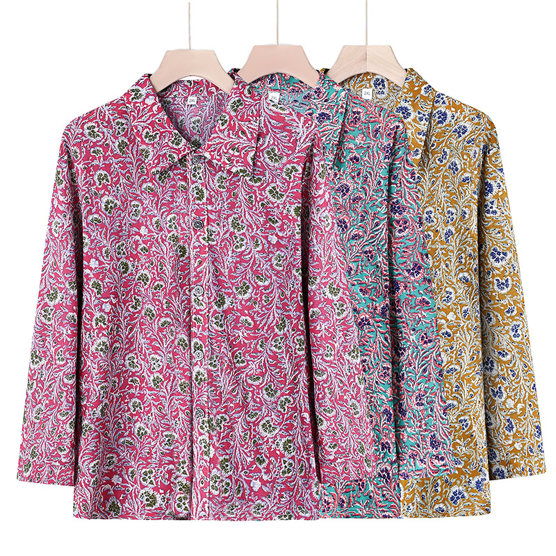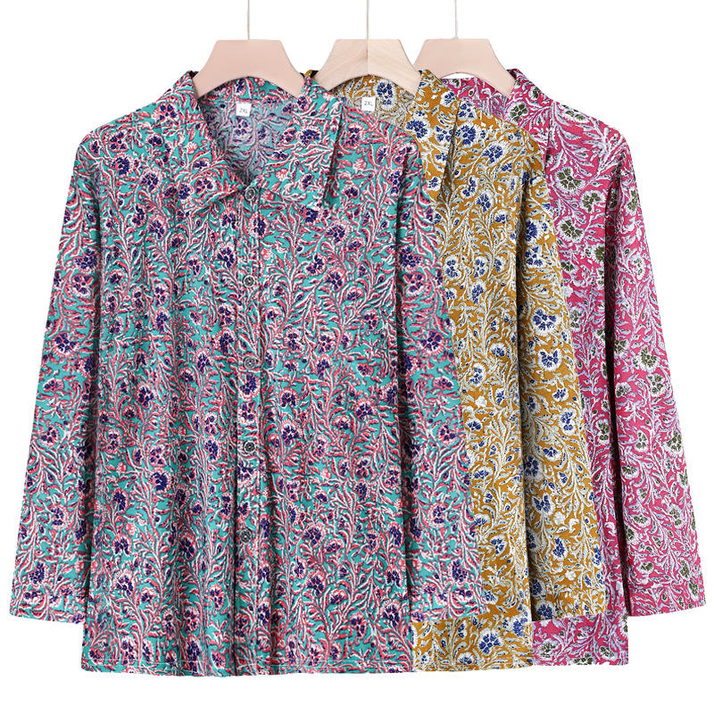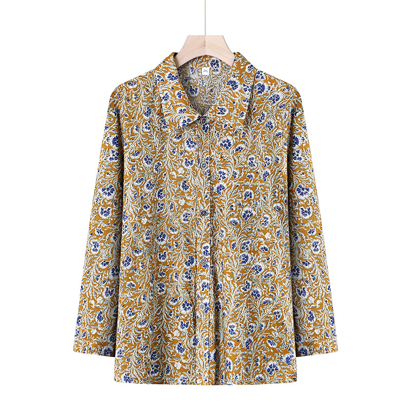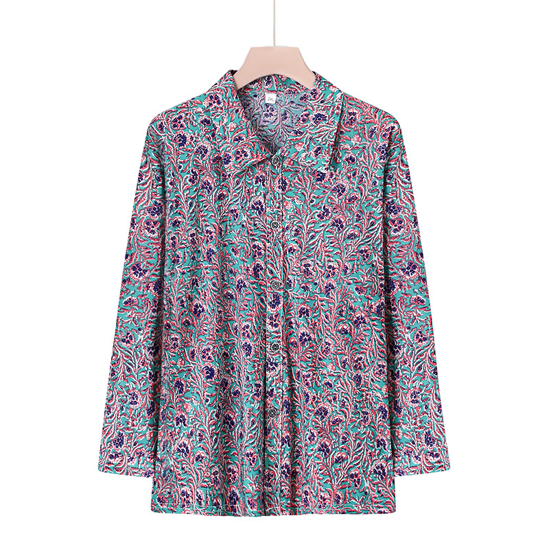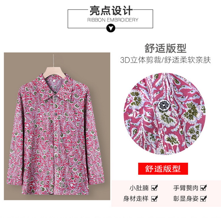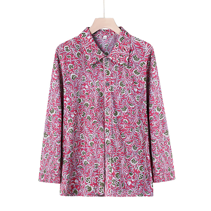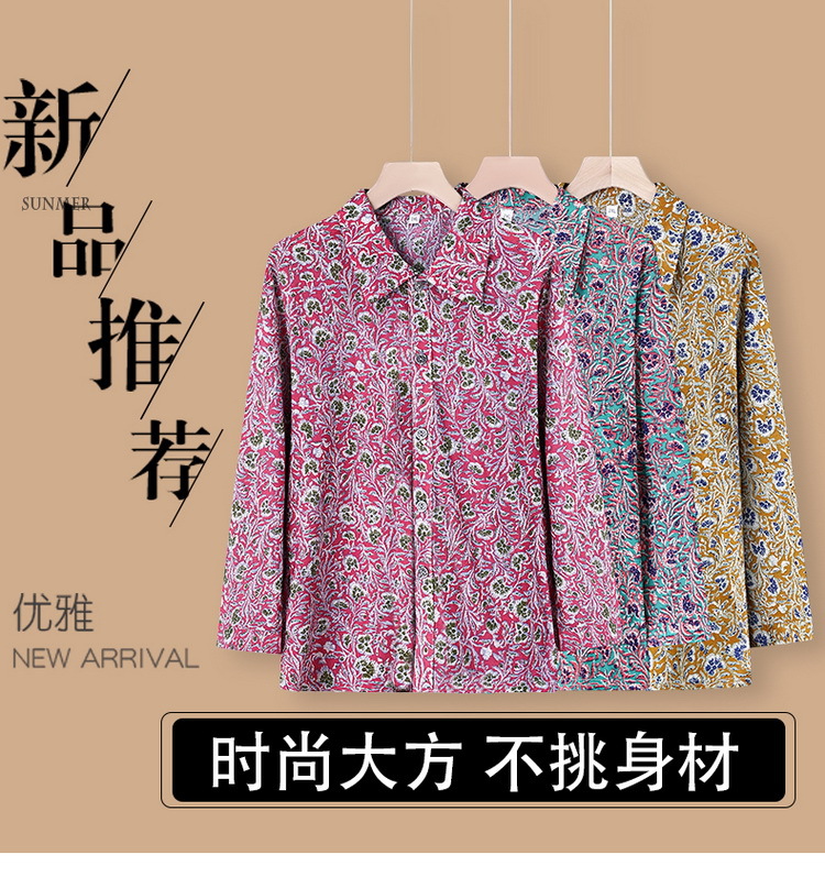Летняя мама Ледяная шелковая рубашка Старушка с длинными рукавами топ для пожилых женщин