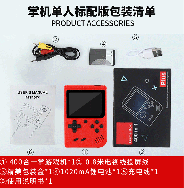 Аксессуары для двойной упаковки: хост, аккумулятор, AV кабель, зарядный провод, инструкция, ручка