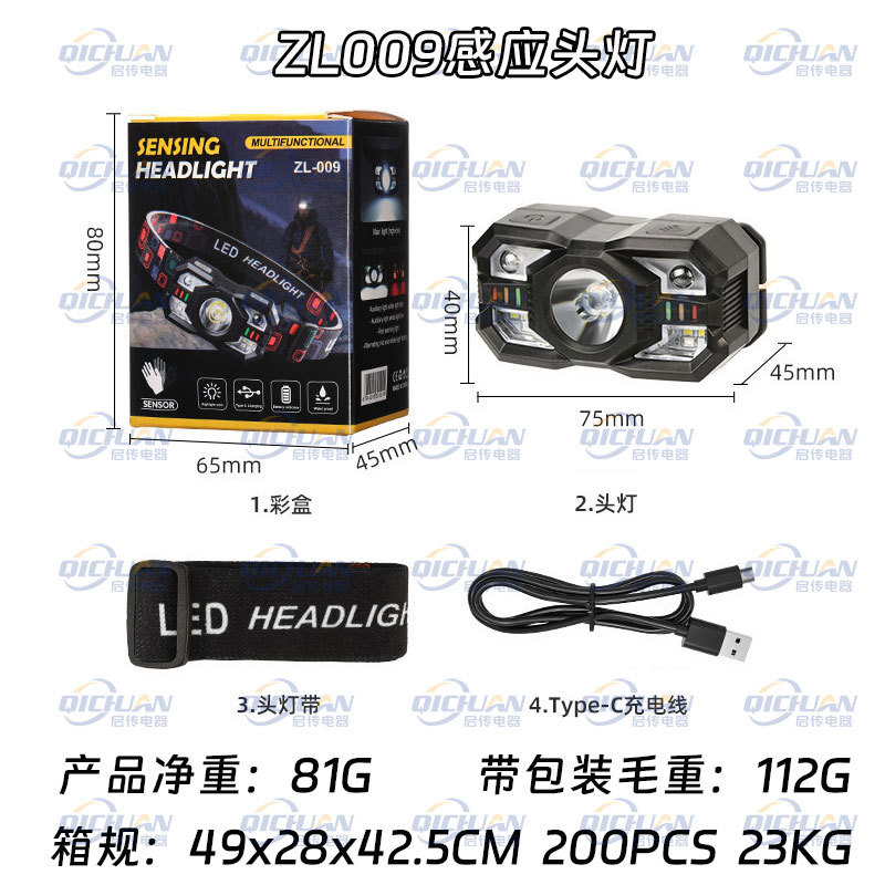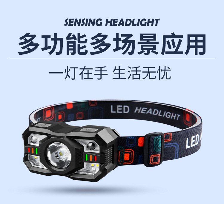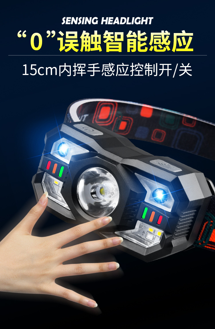 Трансграничный индукционный фары сильный свет длинный срок службы многофункциональный портативный фонарь на открытом воздухе водонепроницаемый рыбалка мини-фары