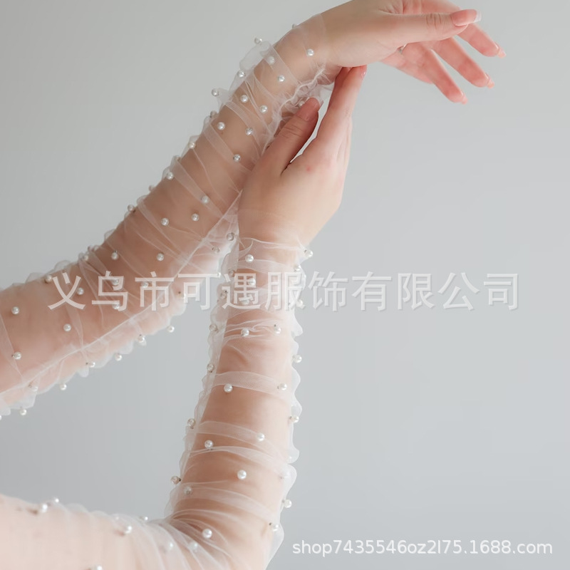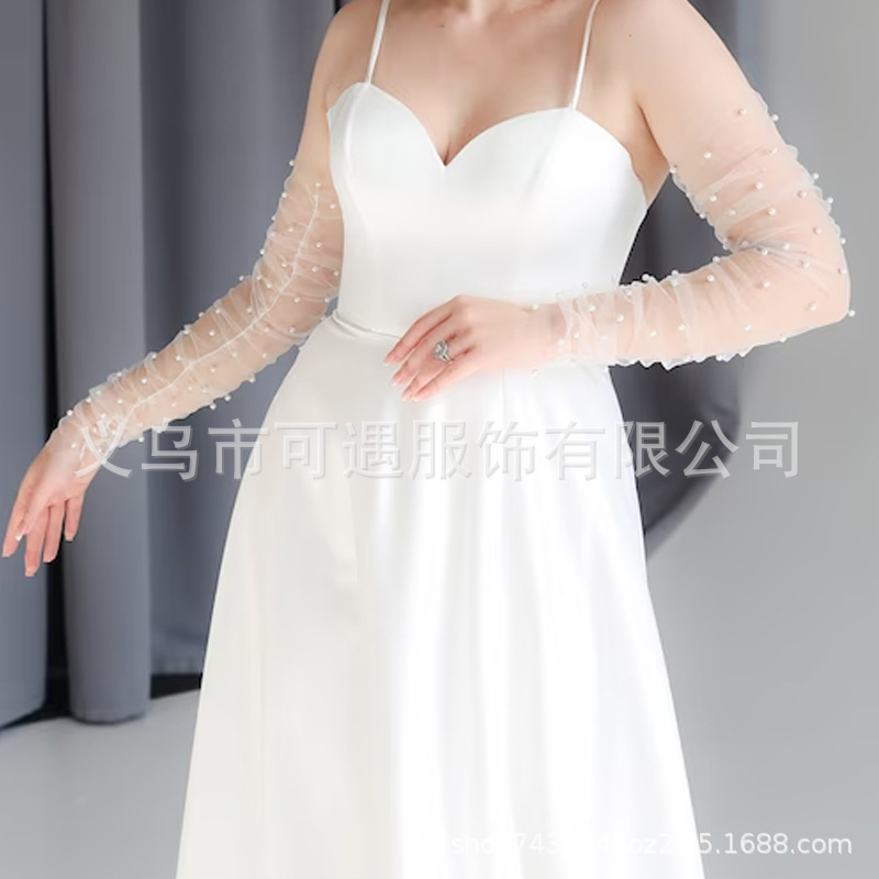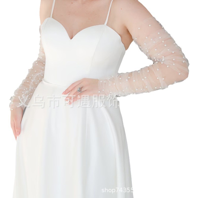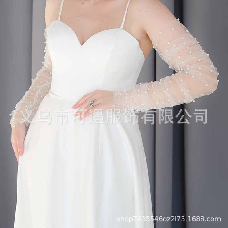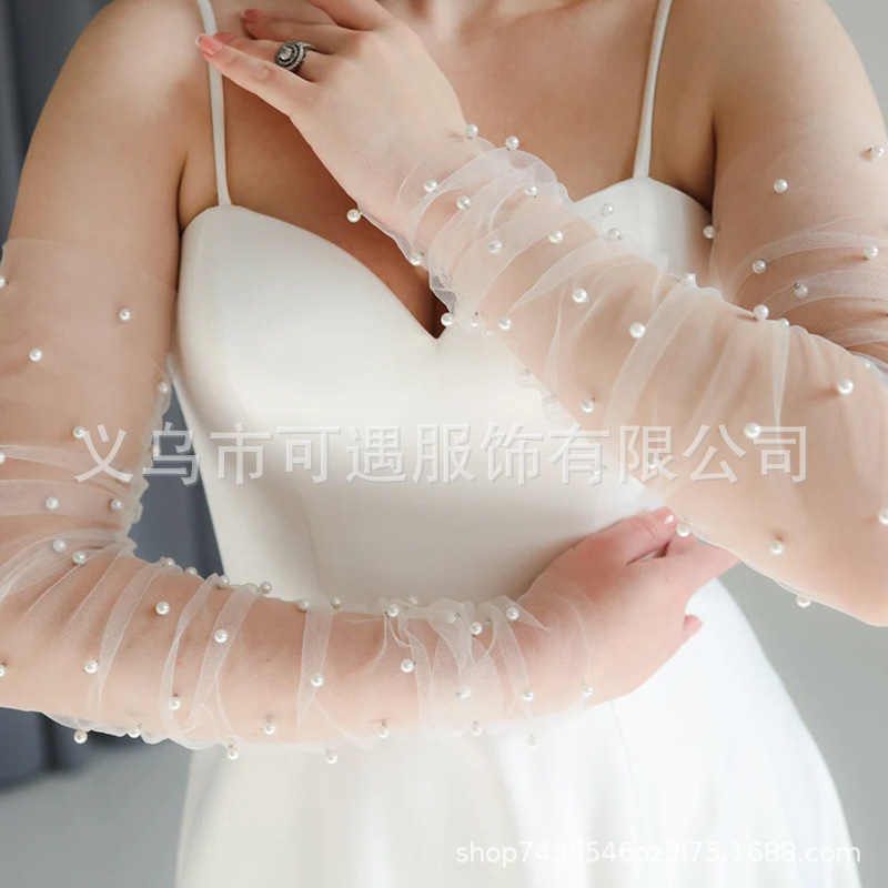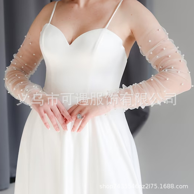 Внешняя торговля платье жемчужная сетка пряжа невесты без пальцев перчатки свадебные аксессуары ретро складки рукава