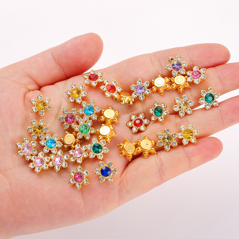 无孔的不能穿线,只能用胶水粘或用钉珠机钉,一份50颗起拍,拍多份相同款可能装一起并不一定是系统 设置的50个一包,不同批次会有点色差,不可避免。