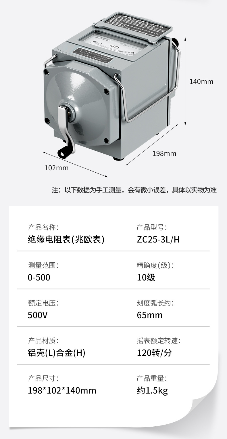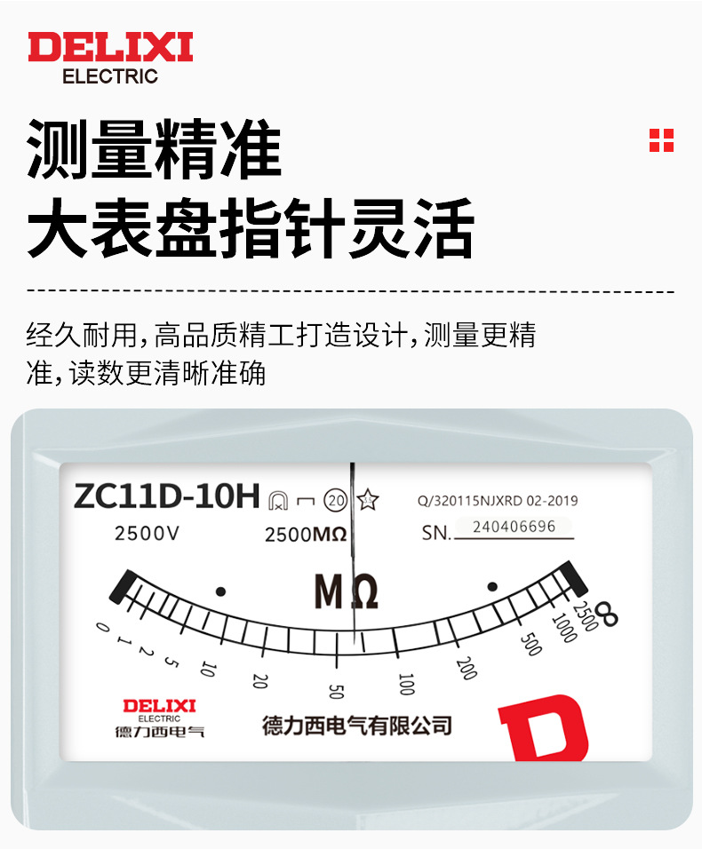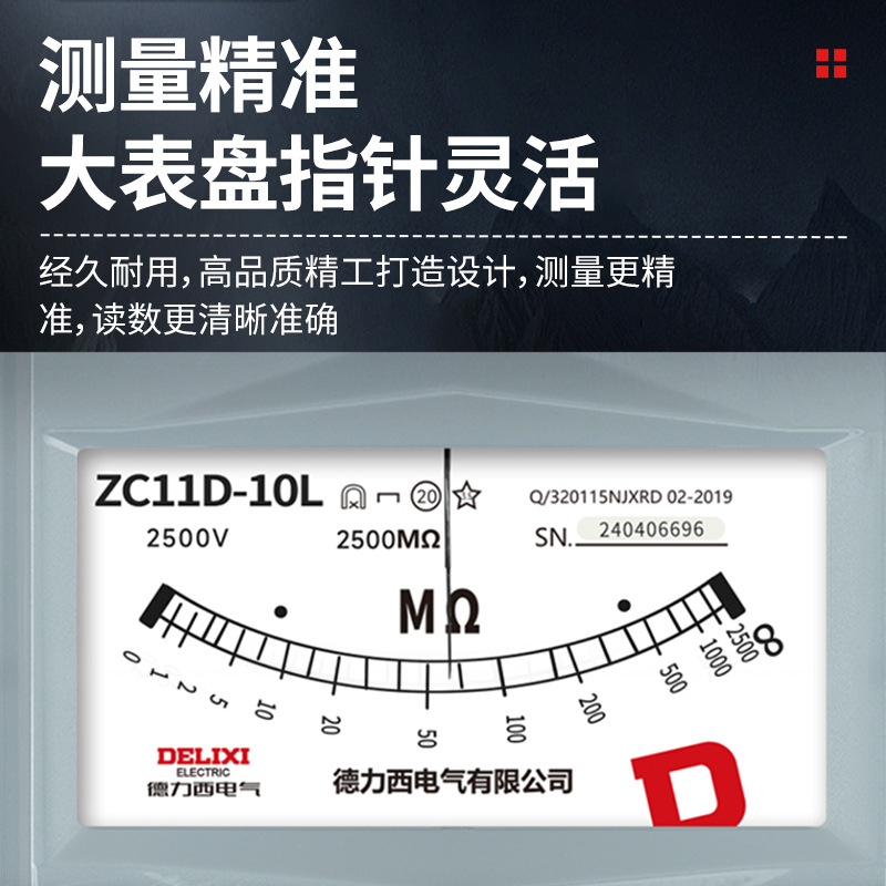 Delixi Изоляционный резистор Высокая точность сопротивления тестер 2500V указатель электрик ручного встряхивания мегерометр