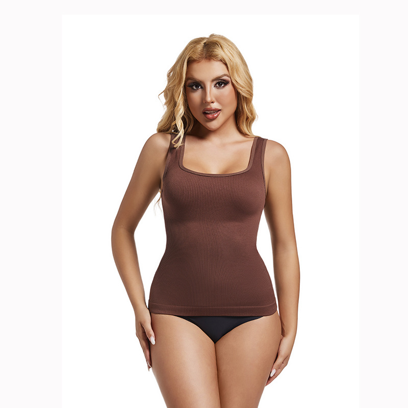 Трансграничный TK Amazon Горячая продажа квадратного воротника бесшовная талия пластиковая талия с удлиненной ниткой жилет с тонким животом
