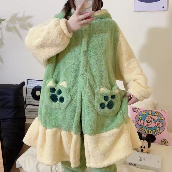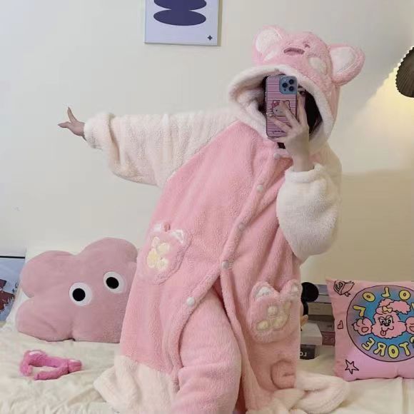 Лиса пижама маленький енот коралловый бархат панда пара осенью и зимой теплая ночная одежда может носить женскую одежду динозавра