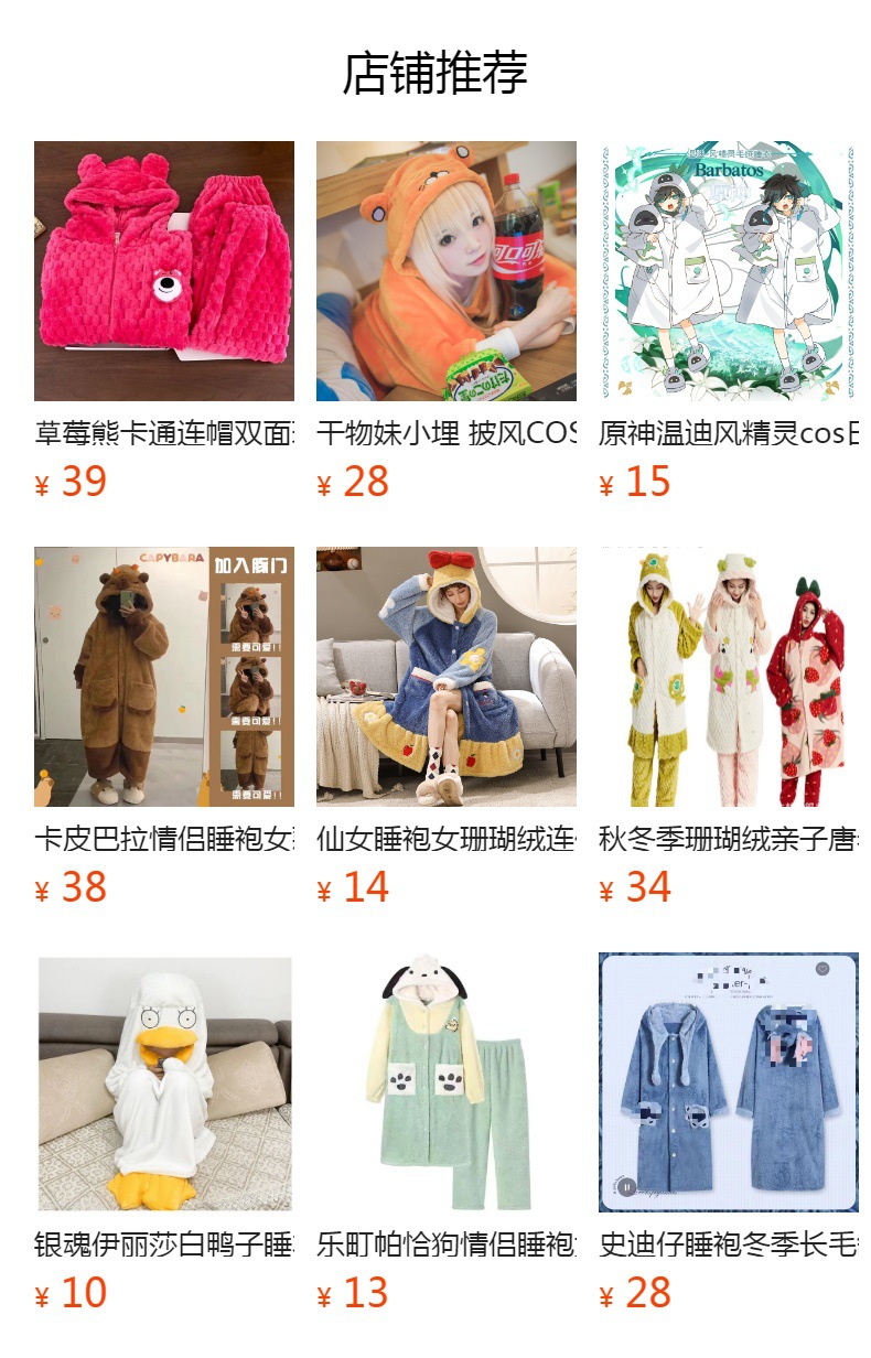 Забавная рыбка с толстой головой; Забавная рыба с толстой головой и туфлями; Уродливая рыба сиамских близнецов; Уродливая рыба цельная с туфлями; лисий халат; Платье и брюки лисы; Классическая ночная рубашка с пандой; Классический халат и брюки в стиле панда.; халат динозавра; Халат и штаны динозавра; Большой клубничный халат; Большой клубничный халат и штаны; рубашка летучей мыши; Халат и брюки летучей мыши; Ночная рубашка с изображением кота КТ; Пижама и штаны для кошек KT; Клубничный медвежий халат; Халат и штаны клубничного мишки; синий халат; Синий халат и брюки; синий бычий халат; Синий бычий халат и брюки; Розовый халатик-монстр; Розовый маленький монстр и штаны; Халат кролика Майле; Халат и штаны кролика Майле; маленький медвежонок-пчелка; Маленький медвежонок, халат и штаны; спальный мешок с пингвином; Спальный мешок и обувь пингвина; халат Винни Пуха; Халат и штаны Винни Пуха; Утиная ночная рубашка; Платье и туфли Kodak Duck; Ночная рубашка Хацунэ; Халат и брюки Хацунэ; Темный халат акулы; Темная акула и брюки; Трехмерный халат в виде акулы; Трехмерный халат и штаны в виде акулы; Ночная рубашка для собаки-шефа; Халат и штаны для собаки-повара; Ночная рубашка для мальчика-волейболиста; Волейбольный мальчик плюс брюки; Ночная рубашка Усачи; Ночная рубашка и брюки Usaqi; Маленький халатик енота; Маленький халат и штаны енота; Утолщенная ночная рубашка «Маленький енот»; Утолщенный халат и штаны в виде маленького енота.; Утолщенная ночная рубашка Капибала; Утолщенная ночная рубашка и брюки Капибала.; Утолщенный пчелиный халат; Утолщенный пчелиный халат и брюки; Утолщенный халат панды; Утолщенный халат и брюки в стиле панда.; Красно-черная цельная ночная рубашка «Уродливая рыбка»; Красная и черная уродливая рыба цельная и туфли; Цельная ночная рубашка розового цвета с уродливой рыбкой; Розовая уродливая рыбка цельная и туфли; Микки Шу бархатная цельная пижама; Комбинезон Labushu из хлопкового бархата; Целое бархатное изделие Carrot Bear Shu