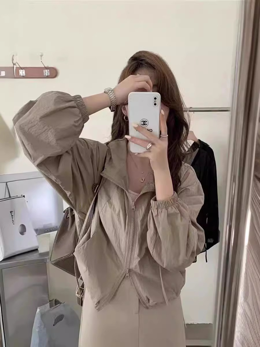 Солнцезащитная куртка с капюшоном Женская тонкая весна и лето 2024 новый маленький человек взрывной повседневная дикая короткая куртка