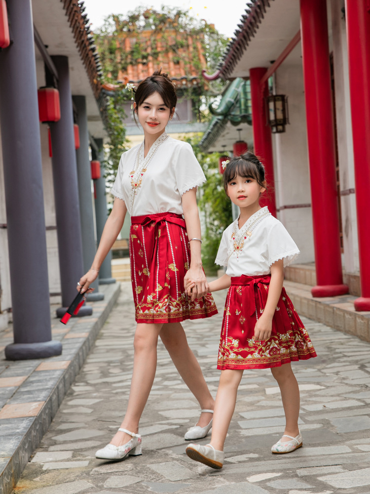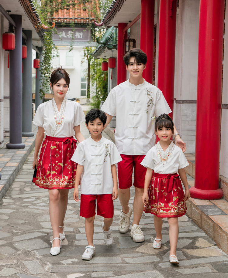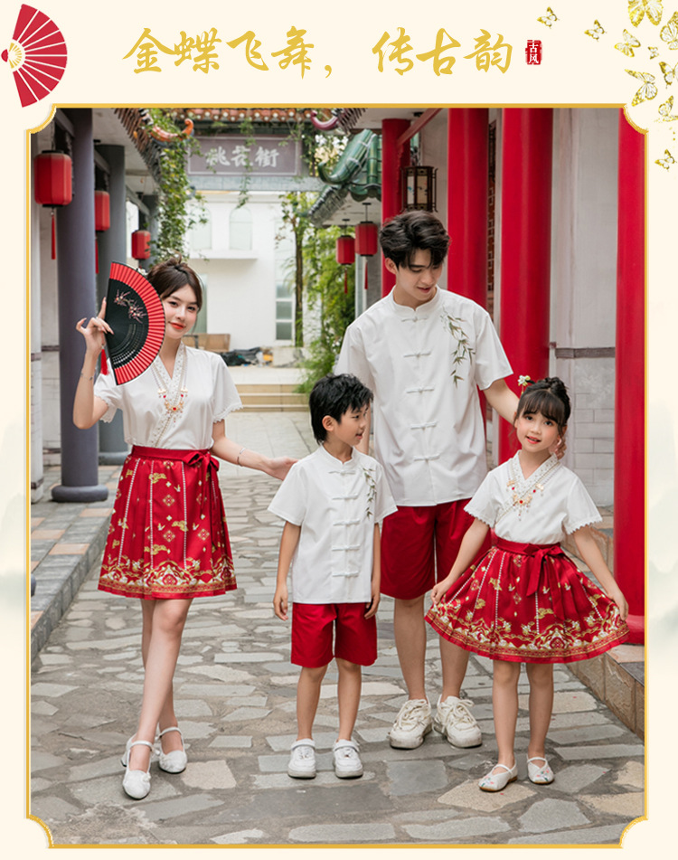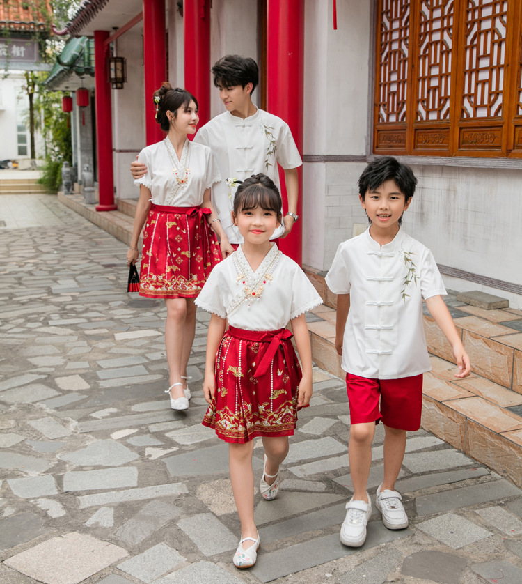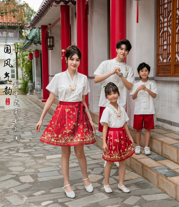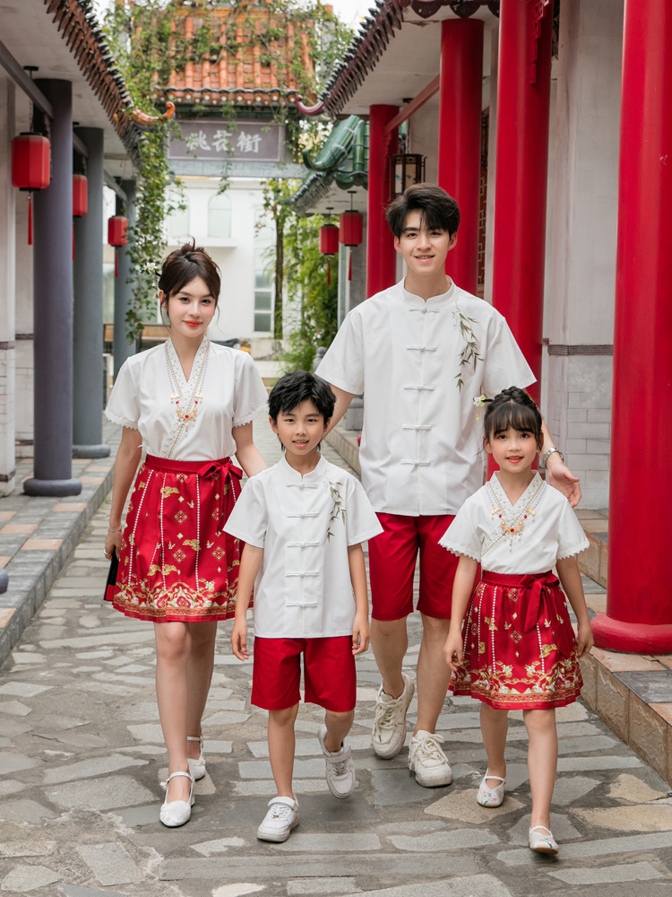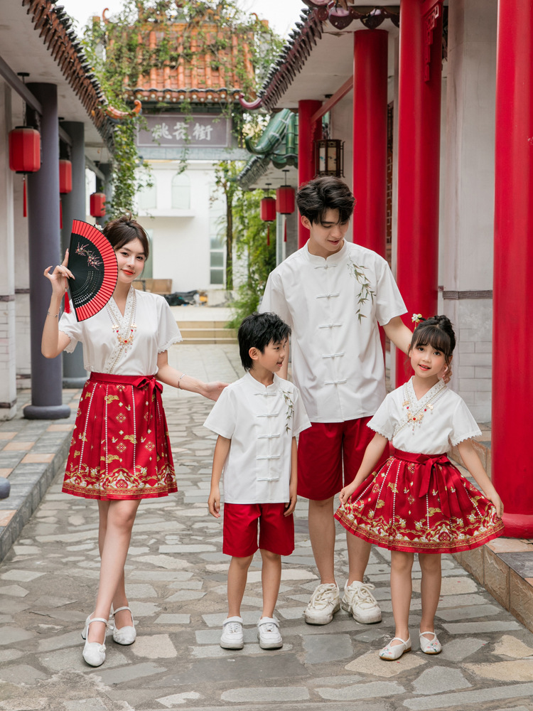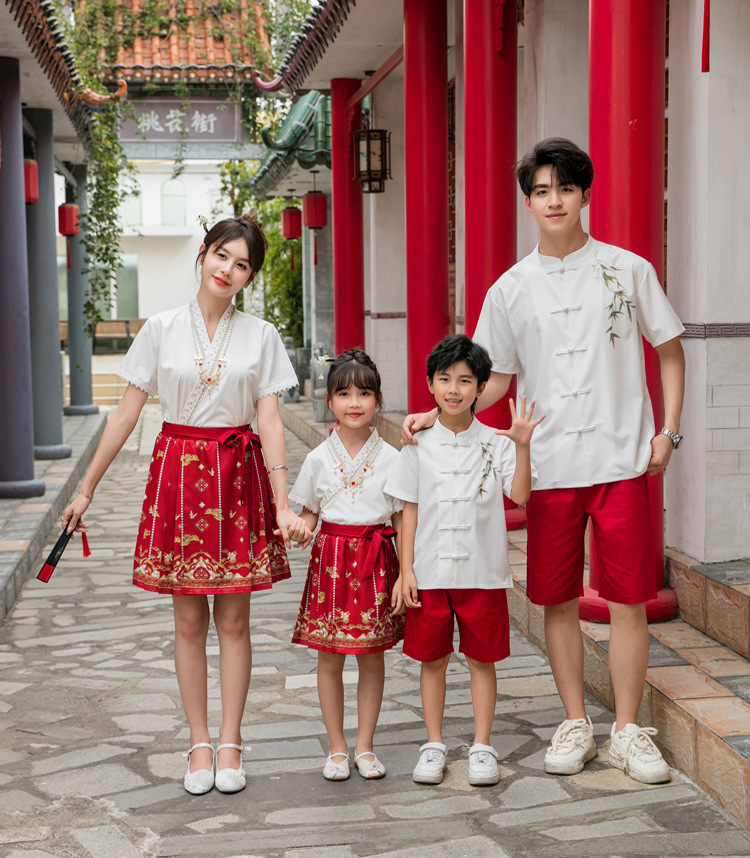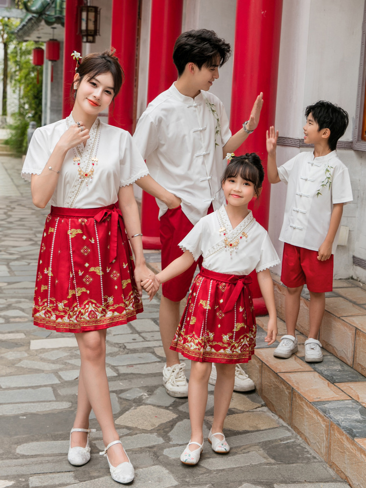 Новинка 2025, летняя семейная одежда в национальном стиле, костюм с юбкой на конском лице для мамы и дочки, новый костюм Тан на династии Китайазри Хань для мальчиков, одежда для выступлений
