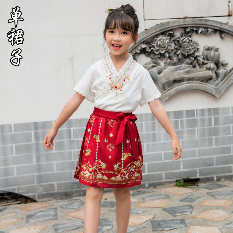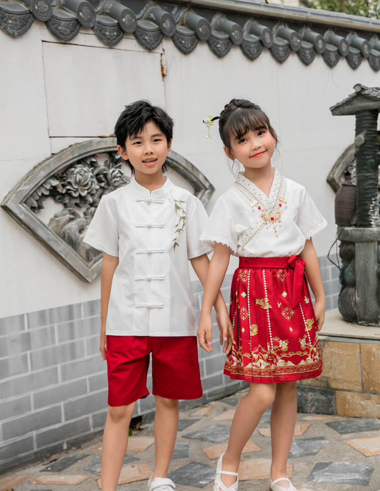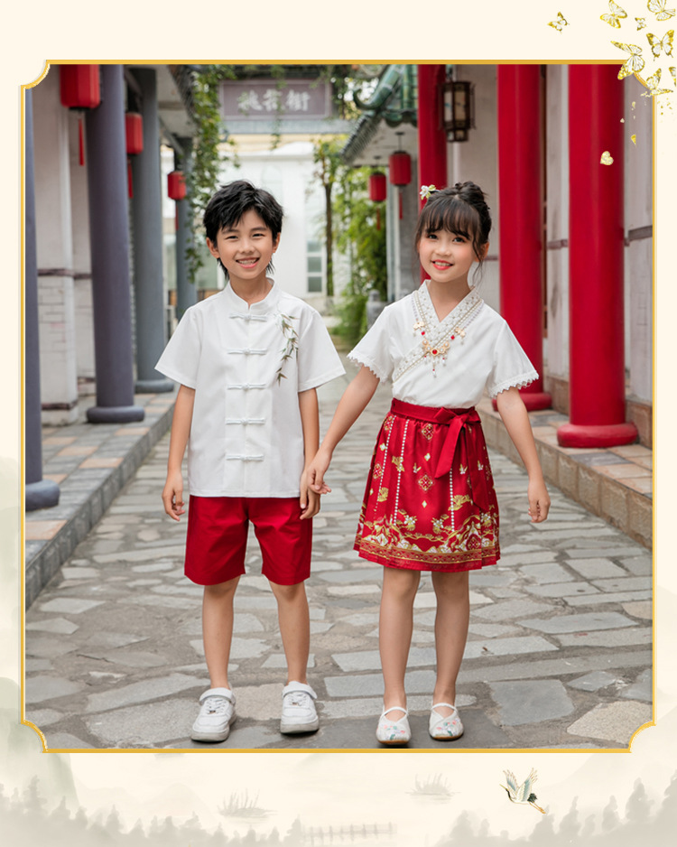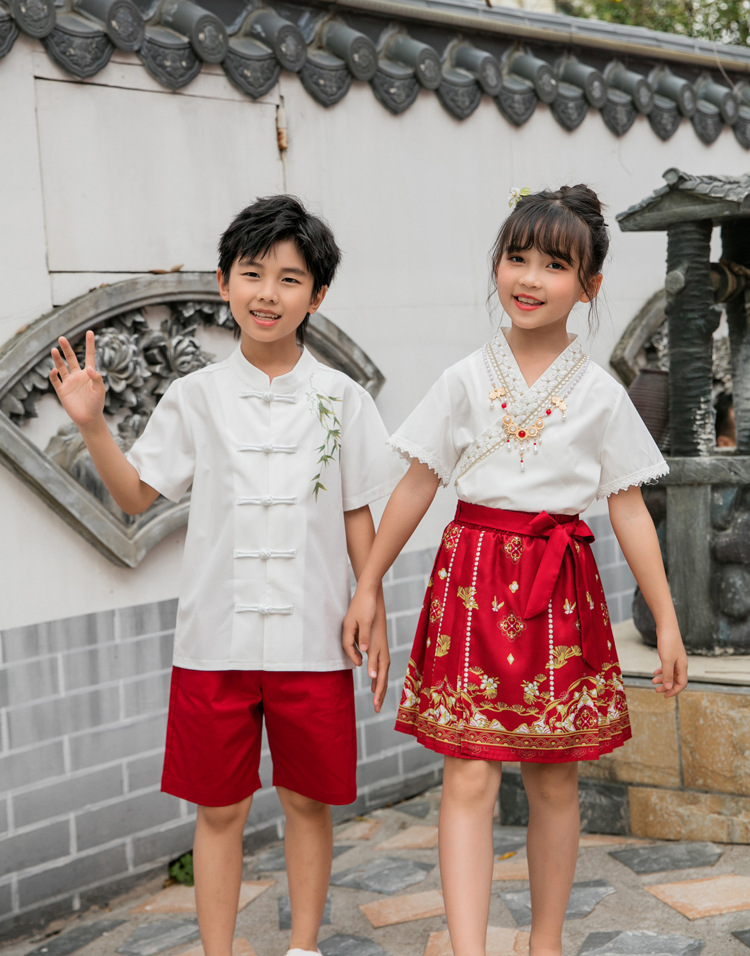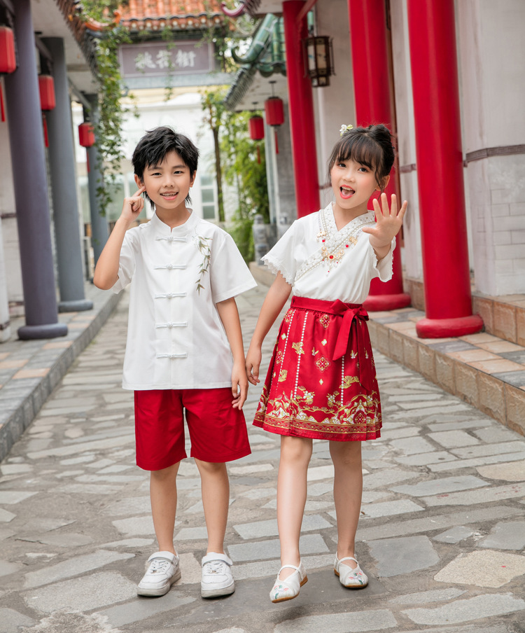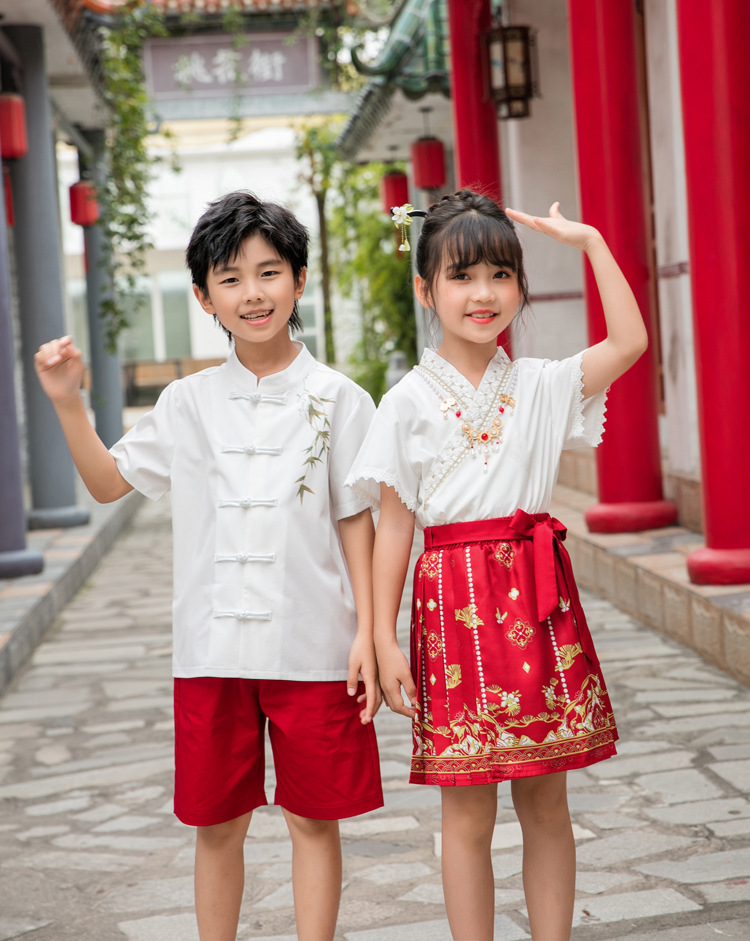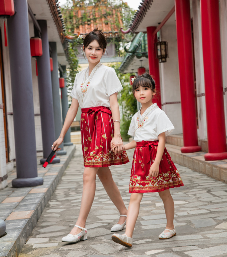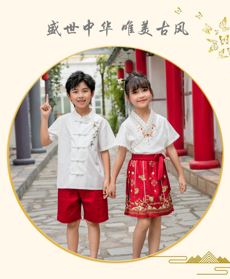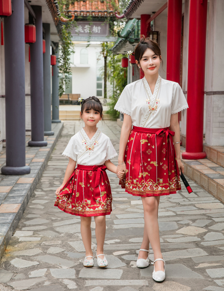 Новинка 2025, летняя семейная одежда в национальном стиле, костюм с юбкой на конском лице для мамы и дочки, новый костюм Тан на династии Китайазри Хань для мальчиков, одежда для выступлений