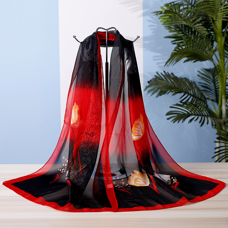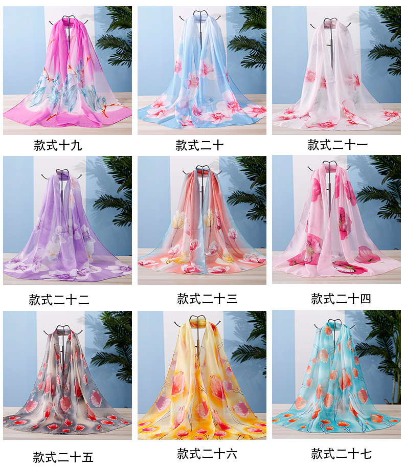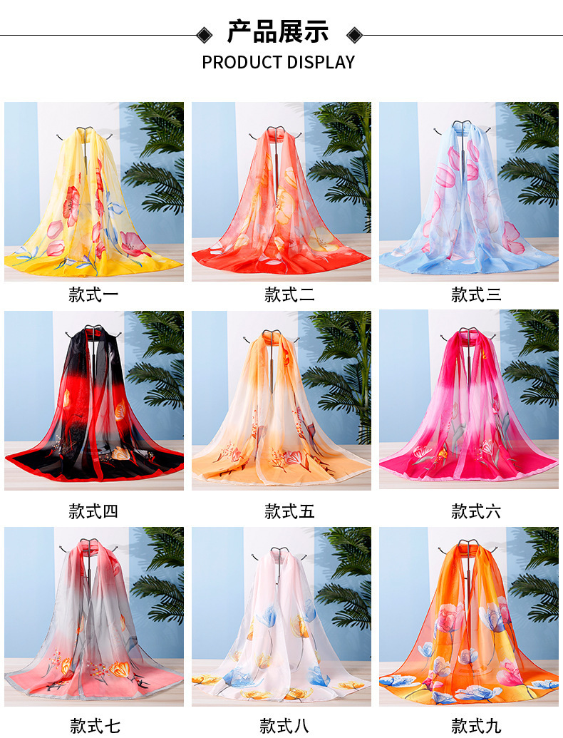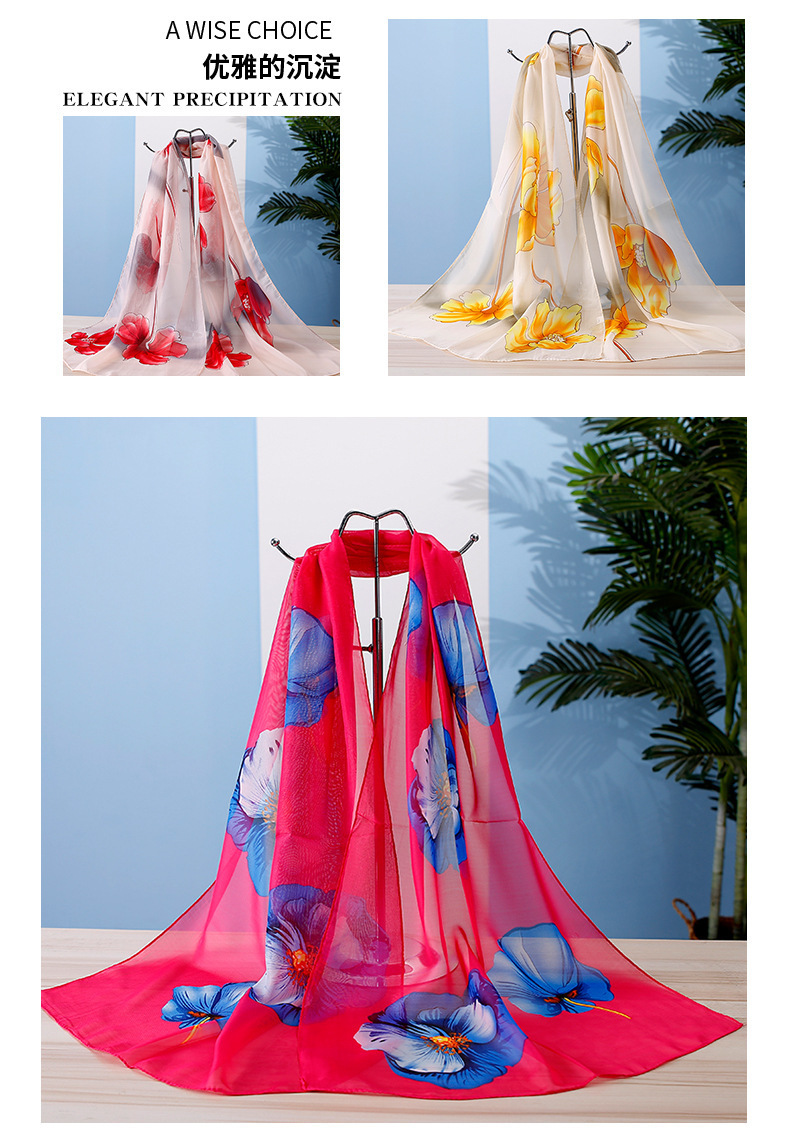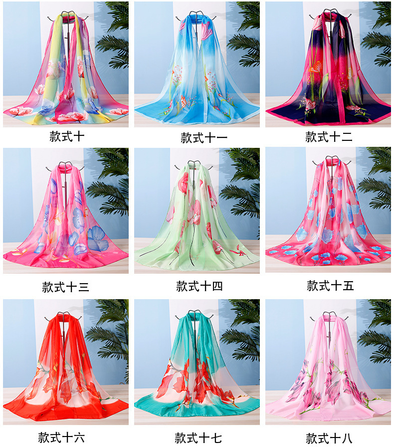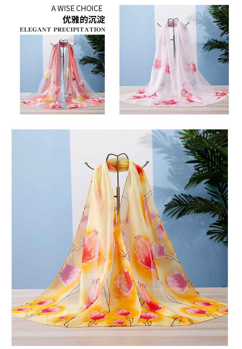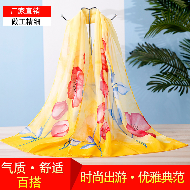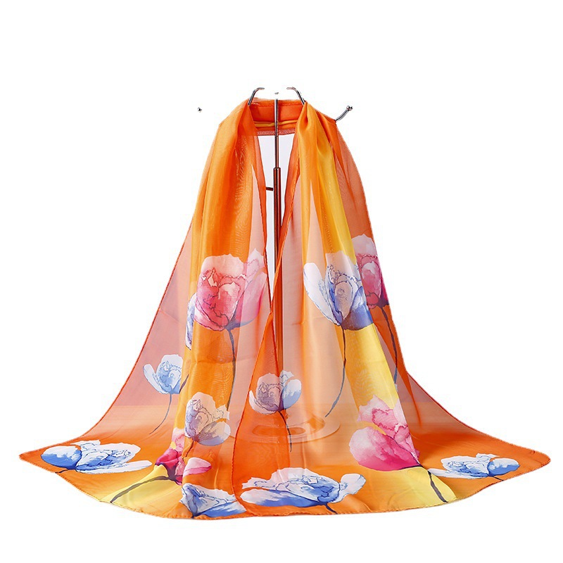Шёлковый шарф из шифона с цифровым струйным принтом, корейская мода 2025 года, яркие цвета, женский, многоцветный, оптом.