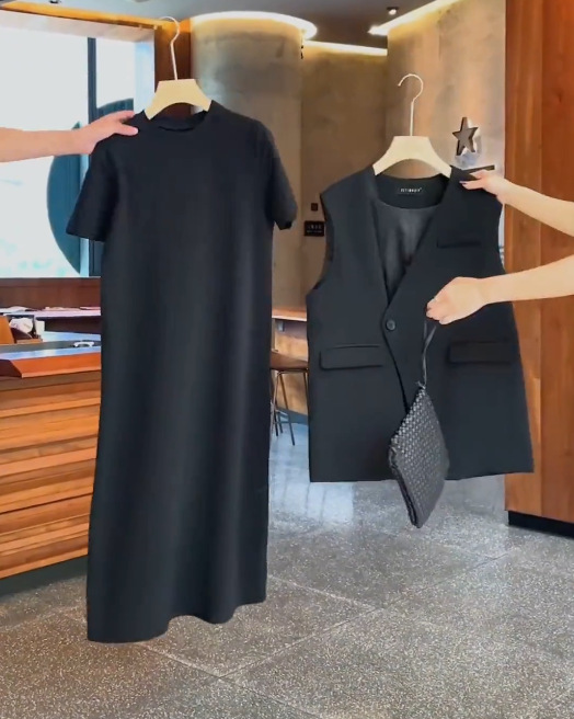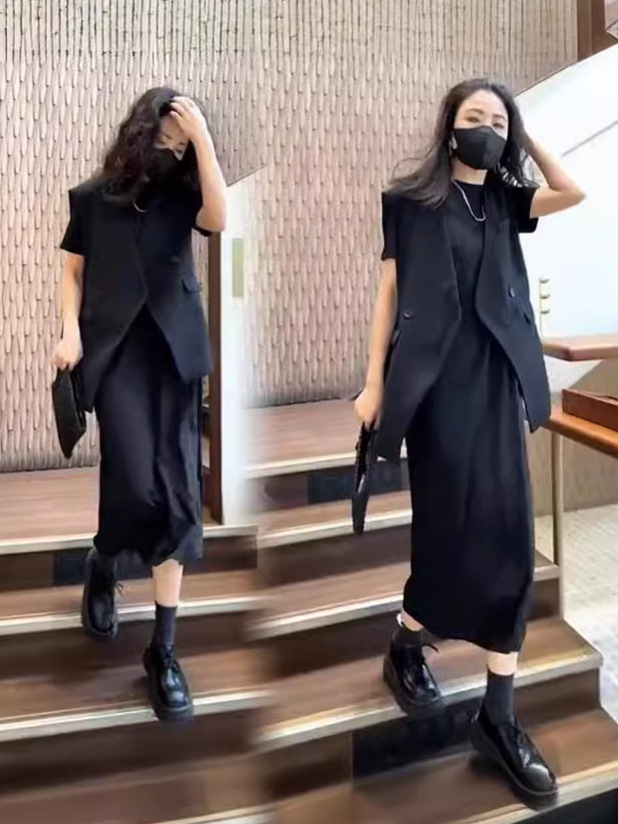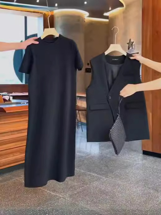 [Спот] Большой размер женская летняя толстая мм набор жакет для лошадей тонкая вязаная юбка с короткими рукавами средней и длинной юбкой из двух частей 6025