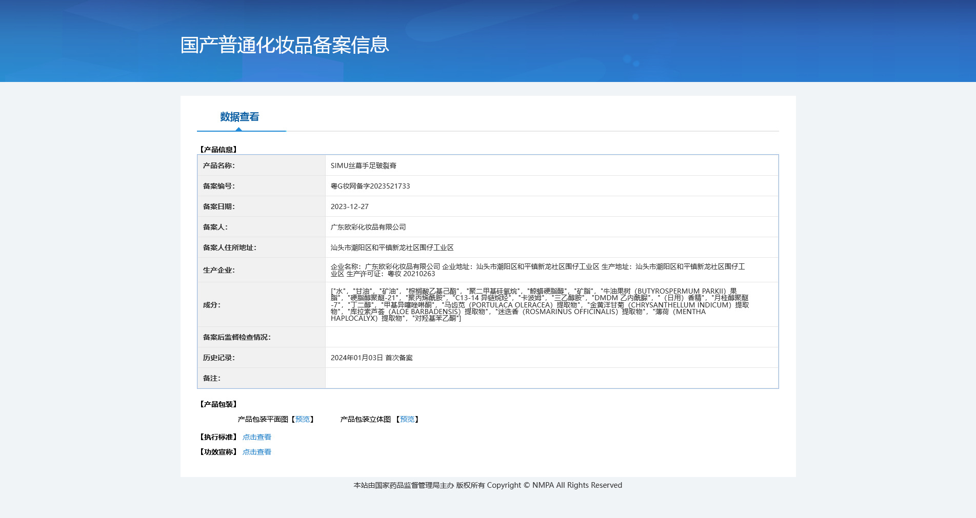 Номер записи для неспециальной косметики: