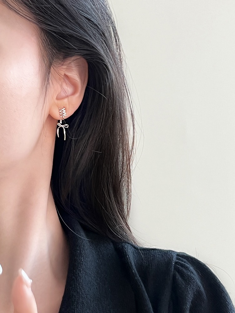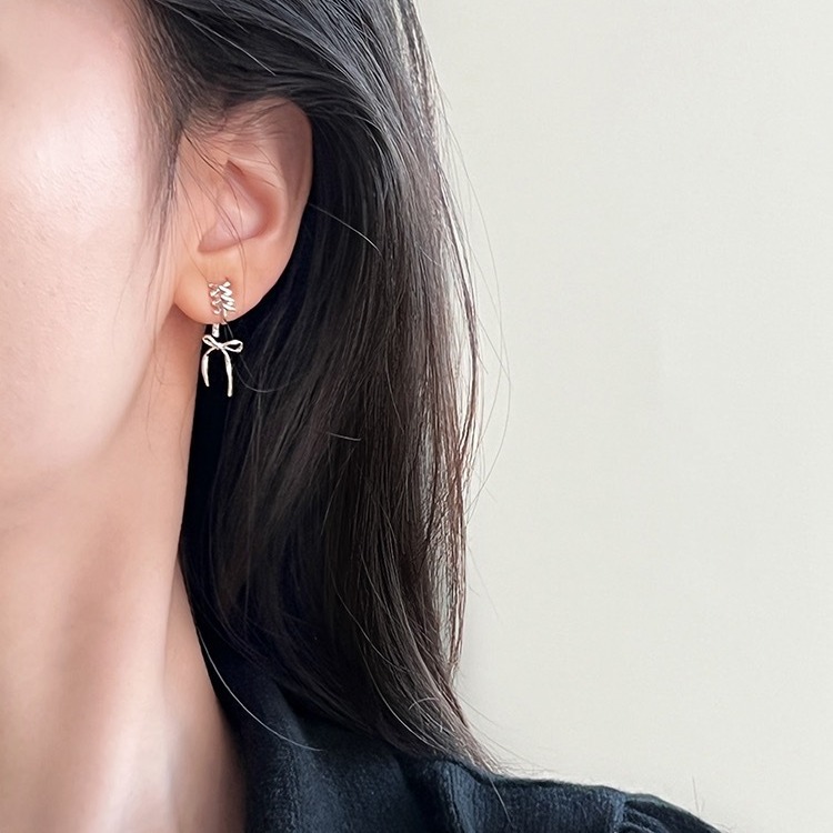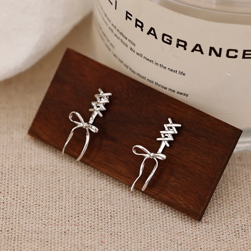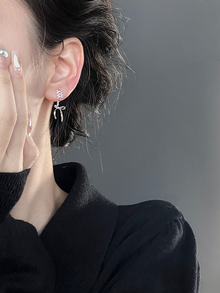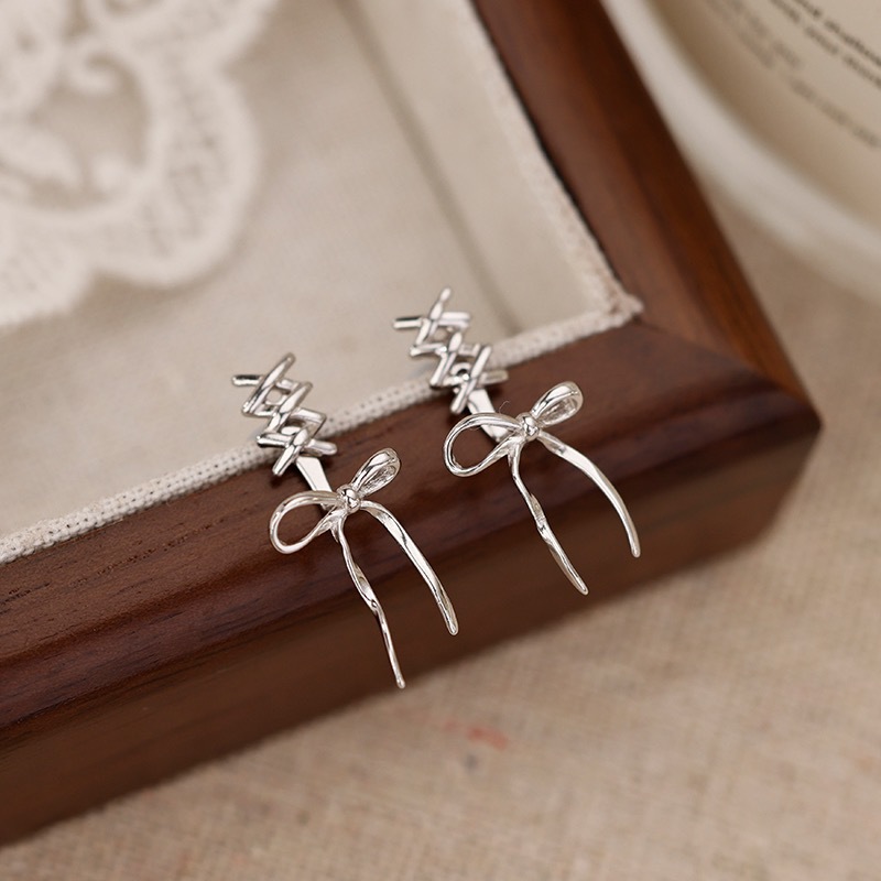 Серьги с бантом из рыбьей кости 2024 новая распущенные серьги женская сетка красная старшая нишка светлая и экстравагантная серьга