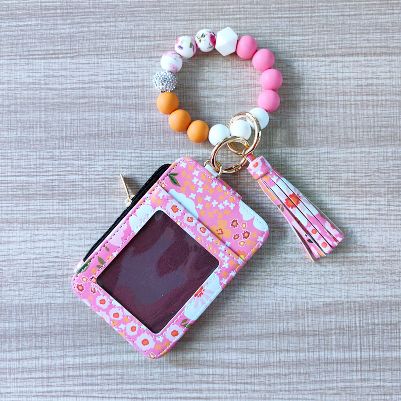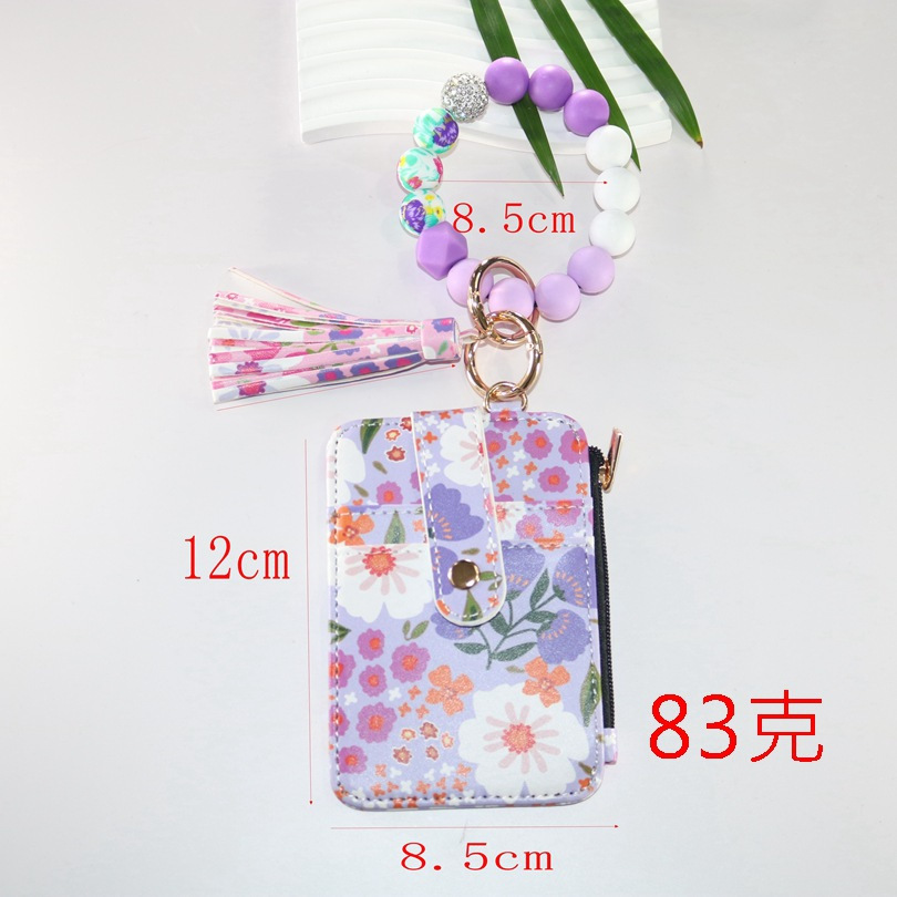Трансграничный женский силиконовый браслет из бисера, брелок для ключей, сумка для карт, кошелек из искусственной кожи с цветком, браслет, сумка для удостоверения личности, сложенная сумка