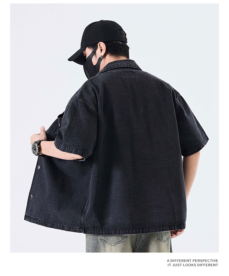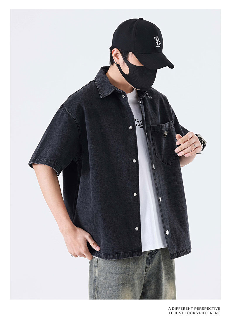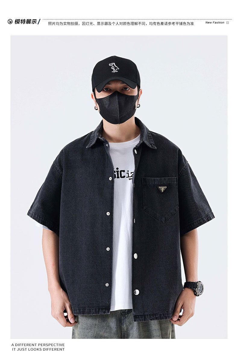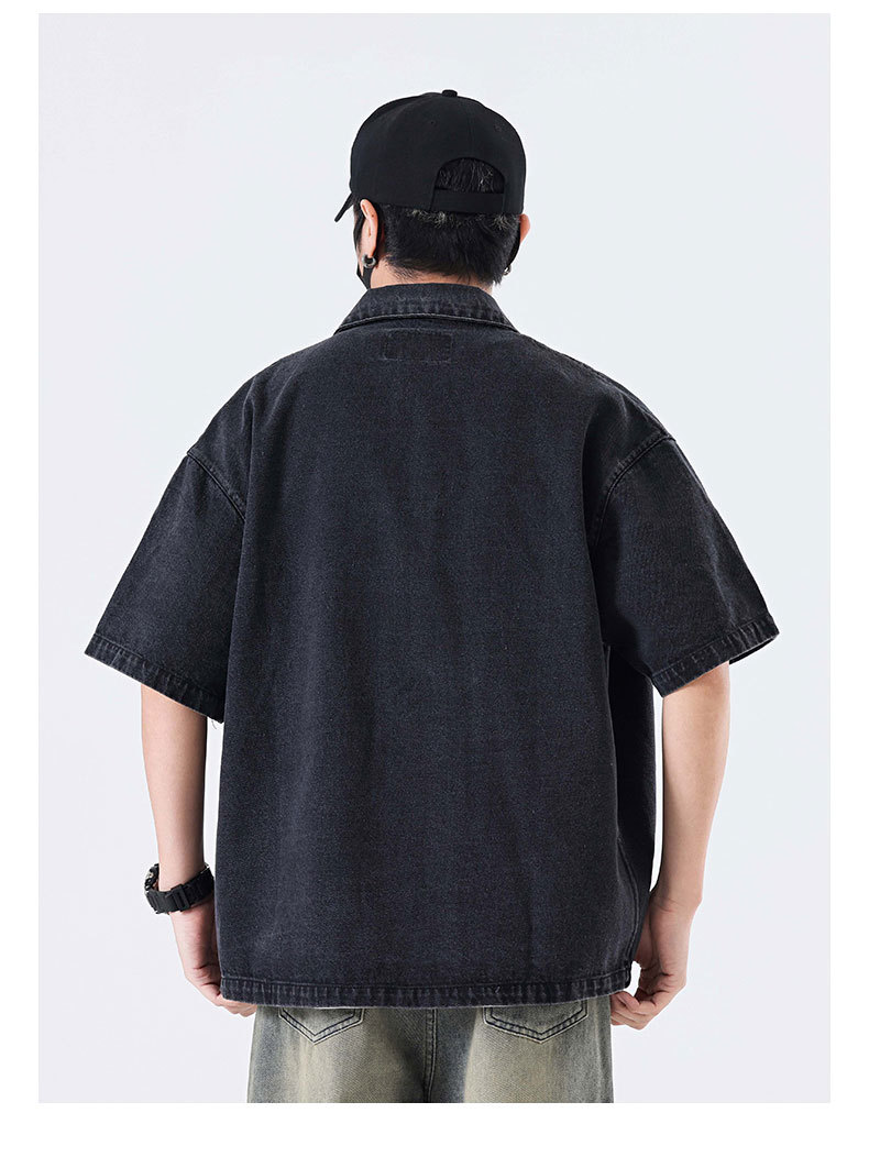 Новая джинсовая куртка-рубашка Nina Gray в стиле американского хай-стрит, весна-лето 2025, с отложным воротником и коротким рукавом, цвет серый, эффект потертости