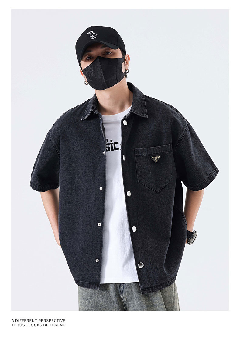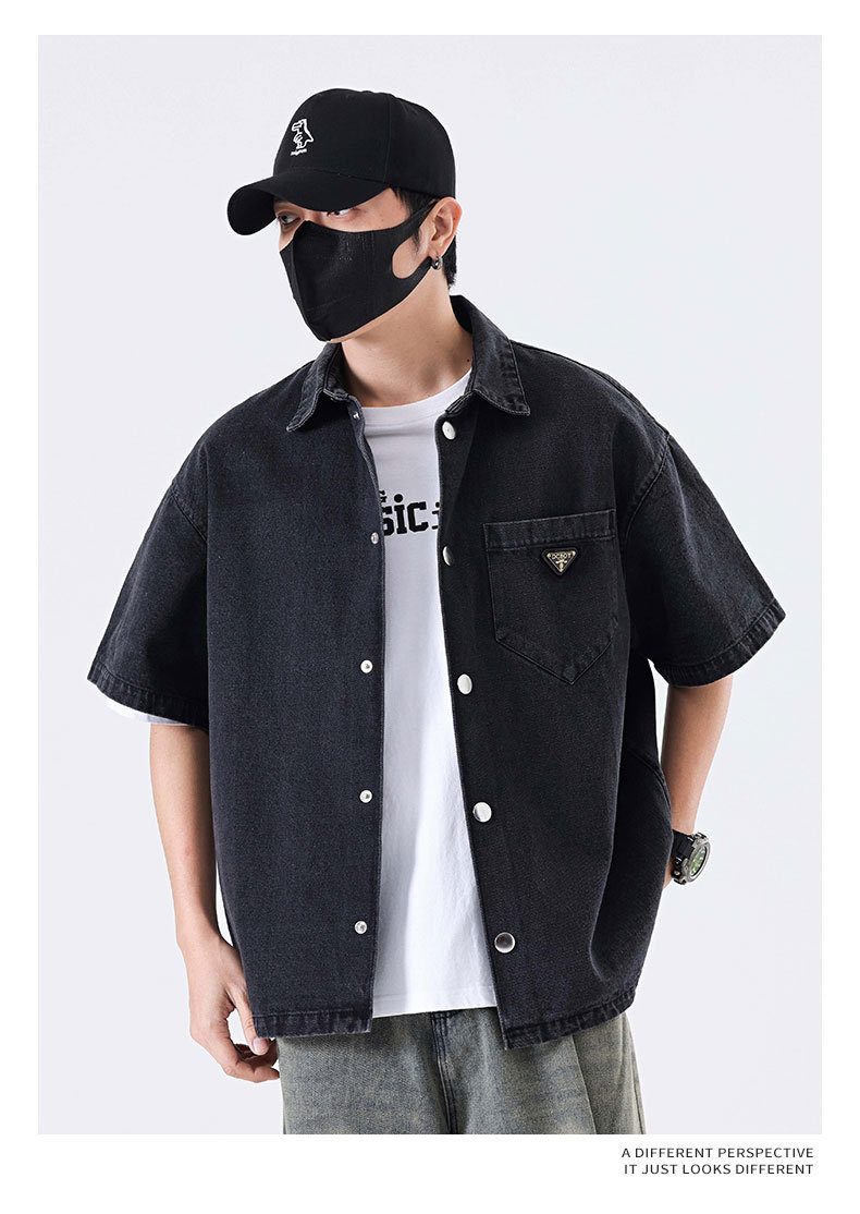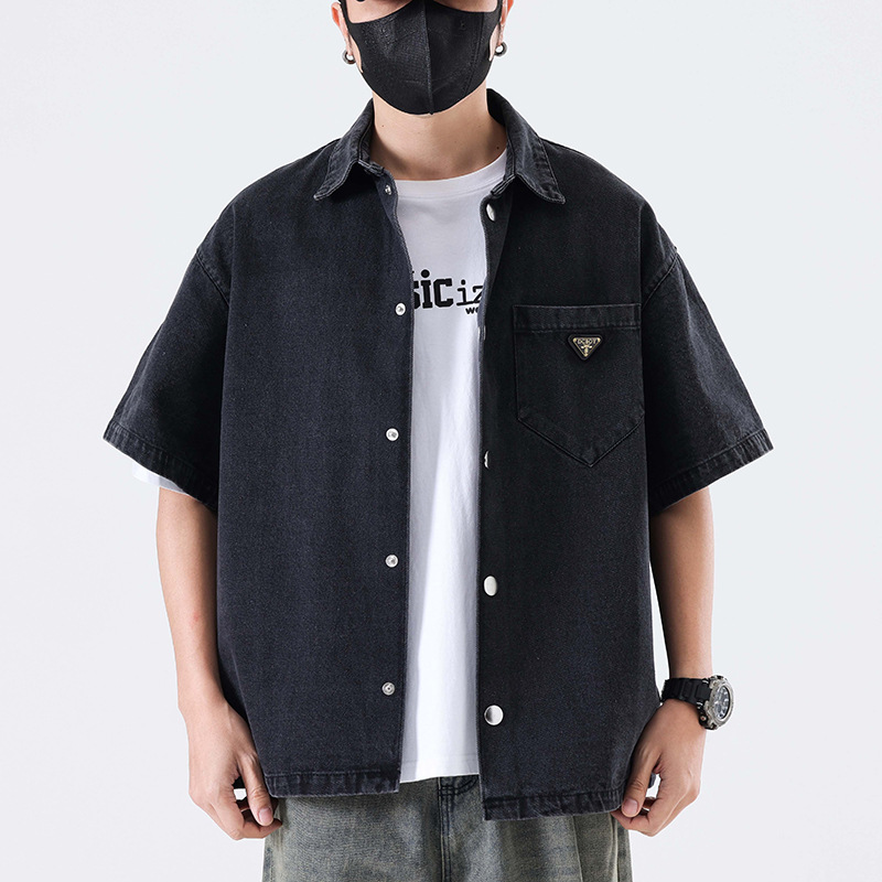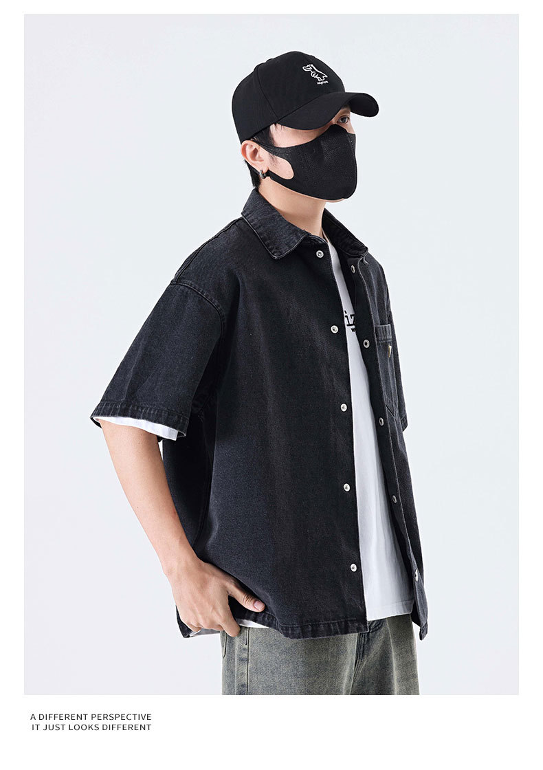Новая джинсовая куртка-рубашка Nina Gray в стиле американского хай-стрит, весна-лето 2025, с отложным воротником и коротким рукавом, цвет серый, эффект потертости