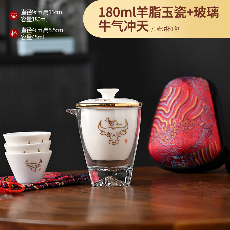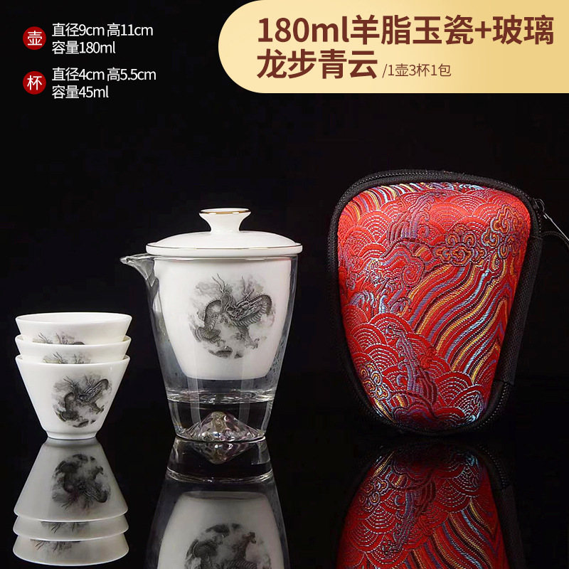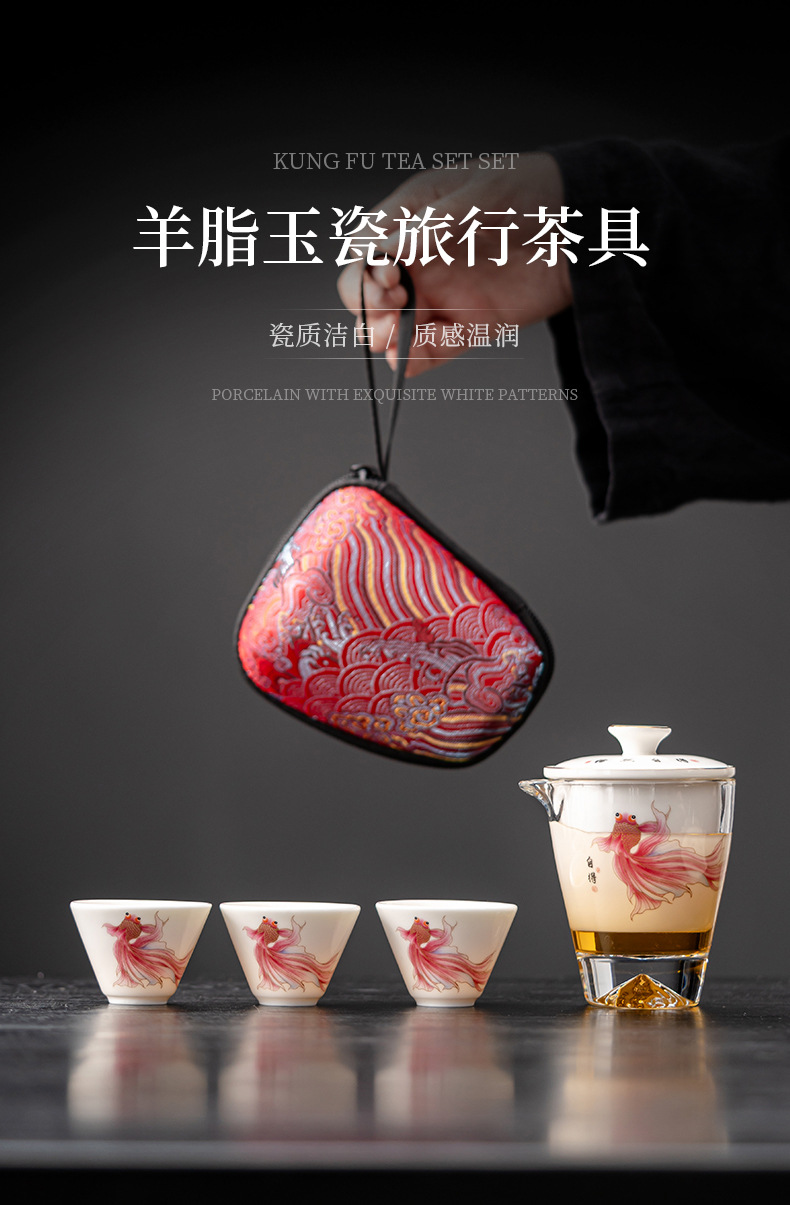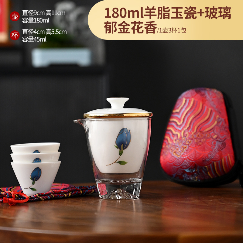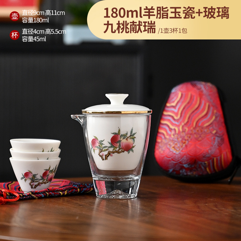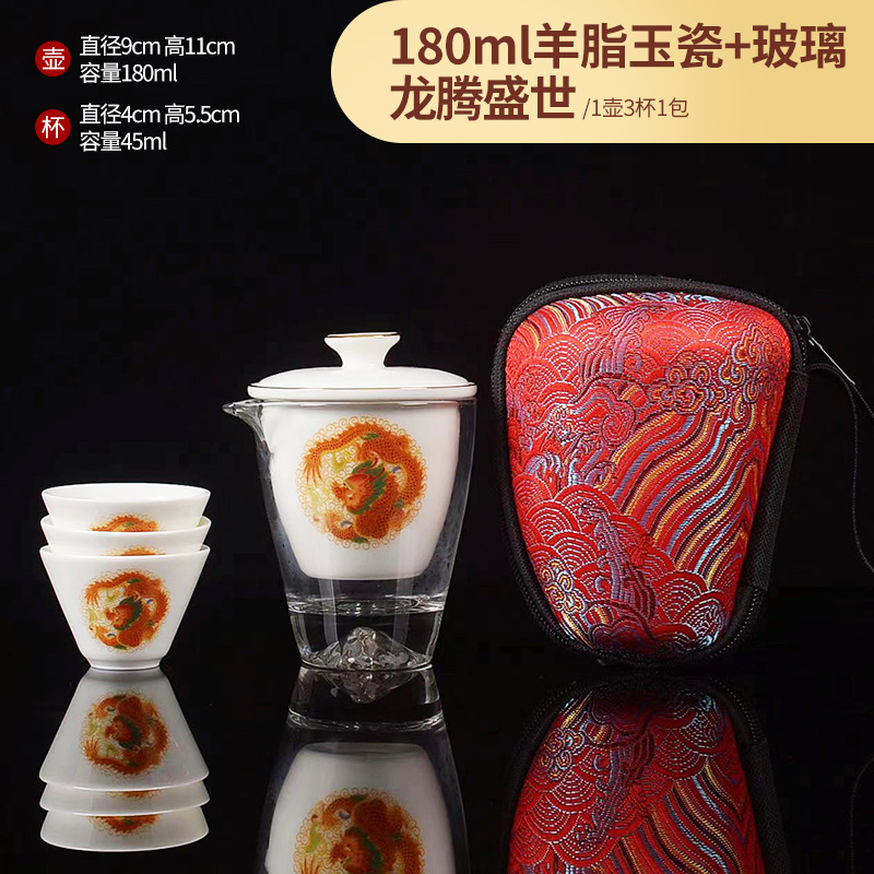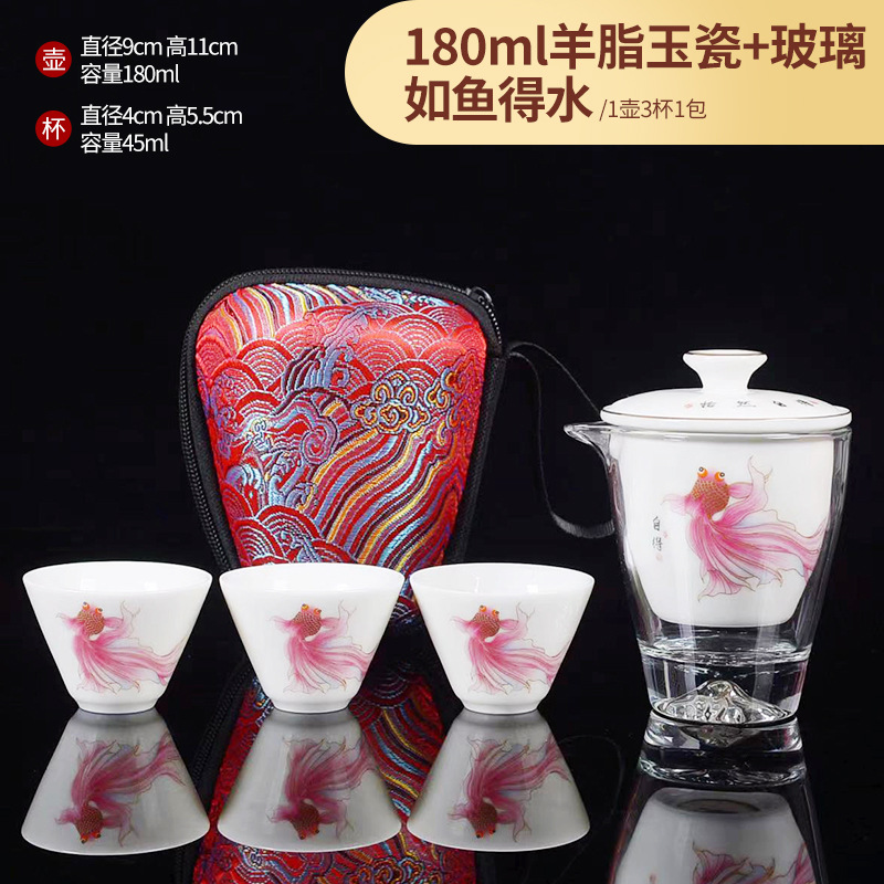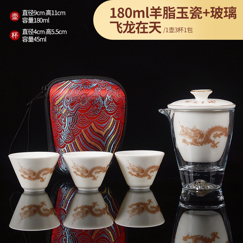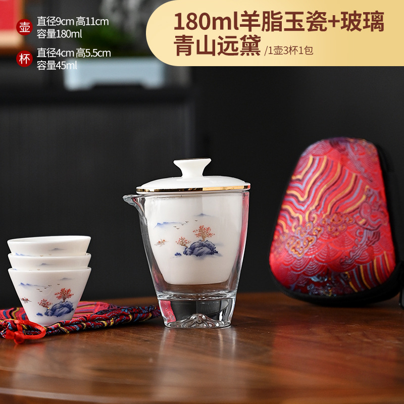 Открытый автомобиль овечий жир нефритовый фарфоровый чайный набор керамический горшок с тремя чашками портативный чайный сервиз кунг-фу