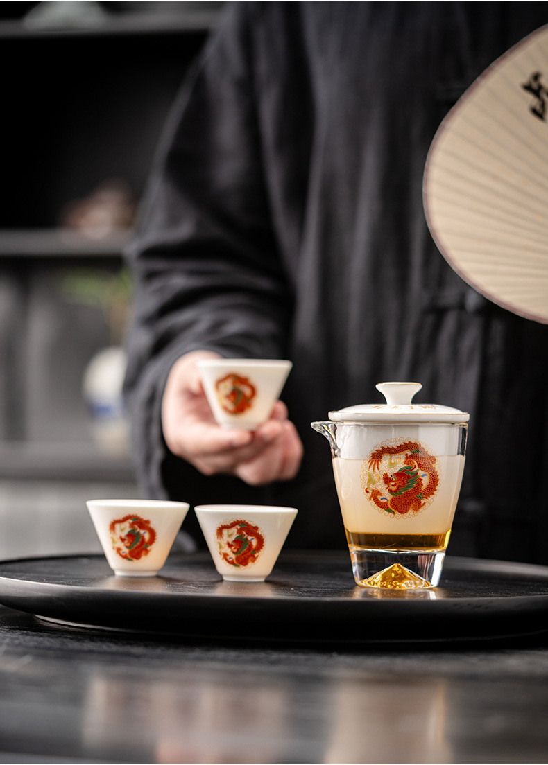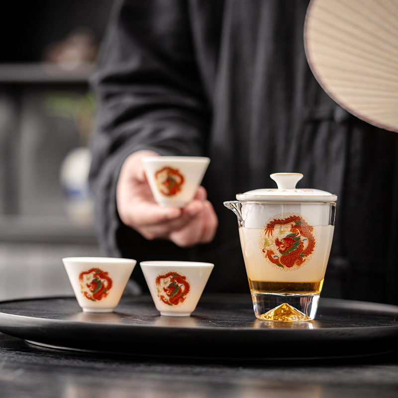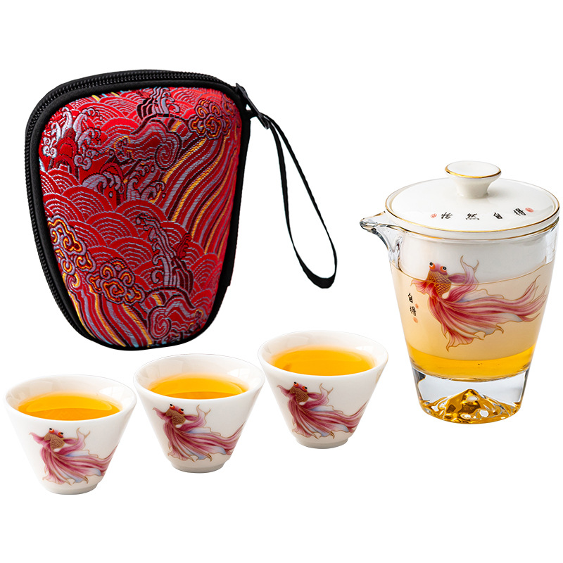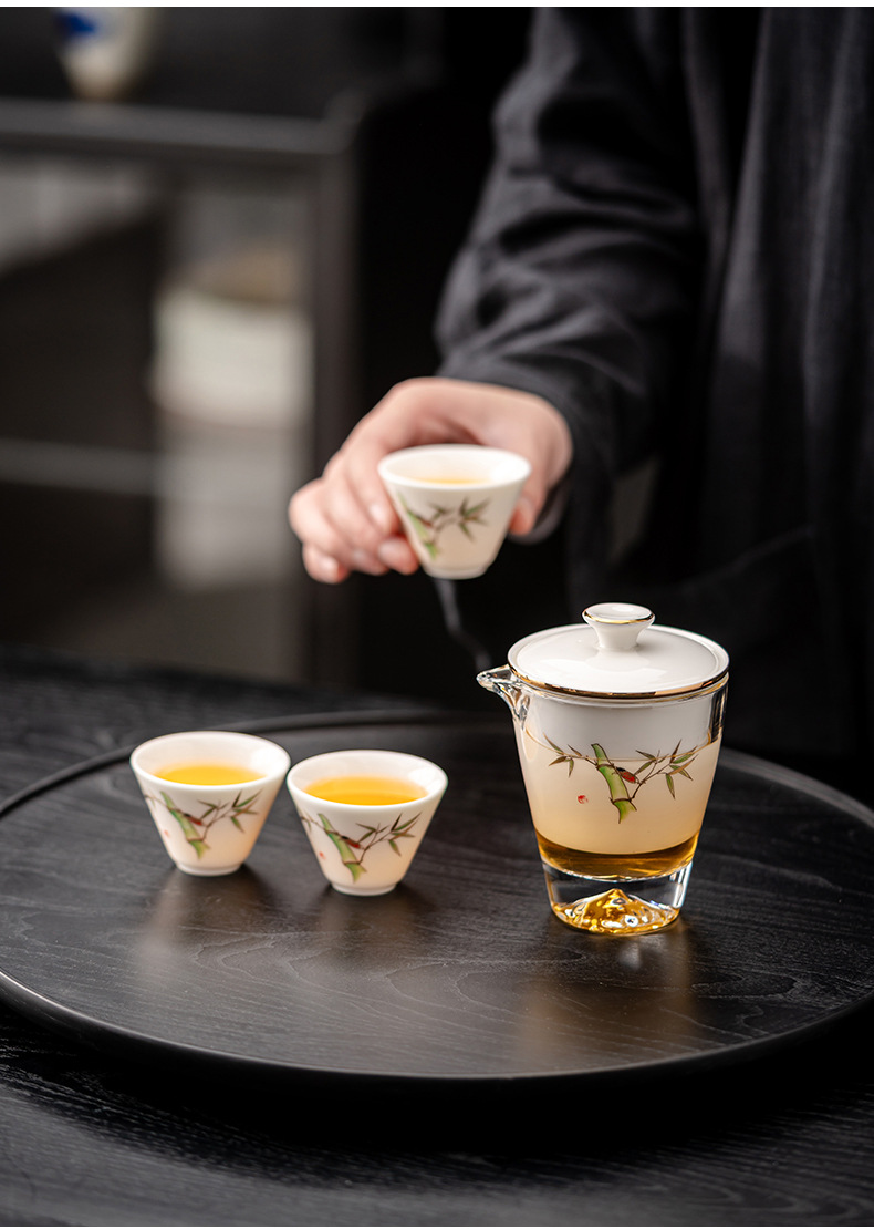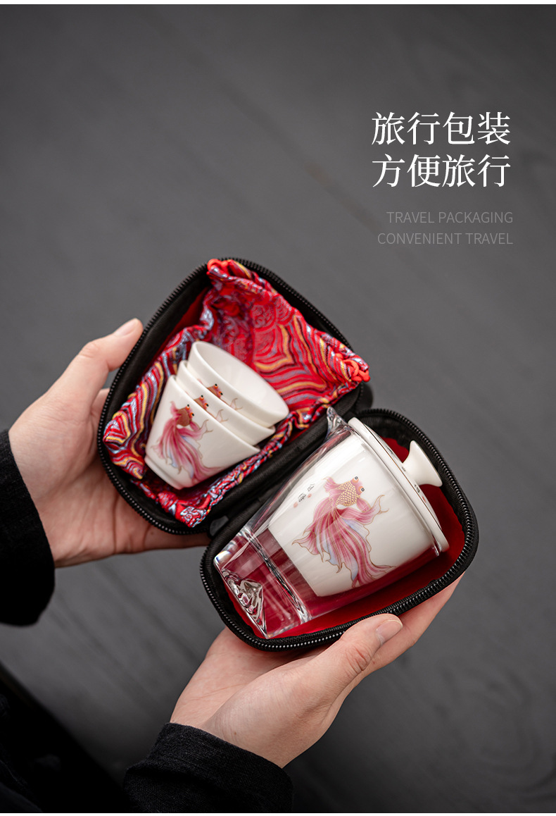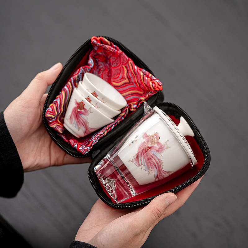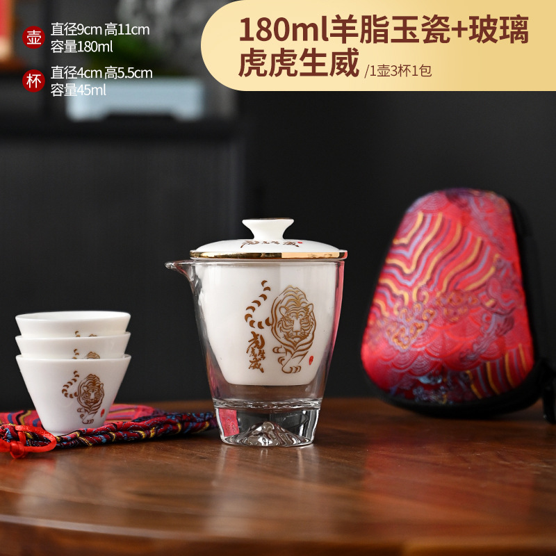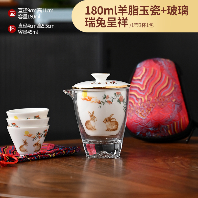 Открытый автомобиль овечий жир нефритовый фарфоровый чайный набор керамический горшок с тремя чашками портативный чайный сервиз кунг-фу