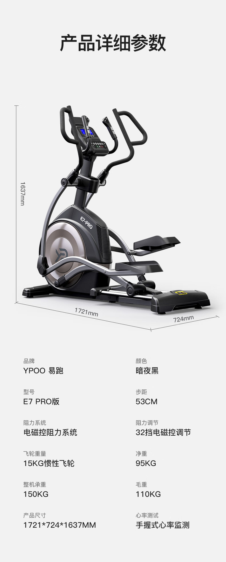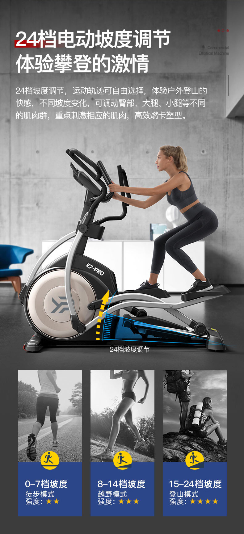 E7-PRO/53CM большой шаг/15KG инерционный маховик/32-ступеная электромагнитная группа управления; E7-PRO ручной уклон/53CM большой шаг/15KG инерционный маховик; E7-PRO электрический уклон/24-й электрический уклон/53CM большой шаг/15KG инерционный маховик