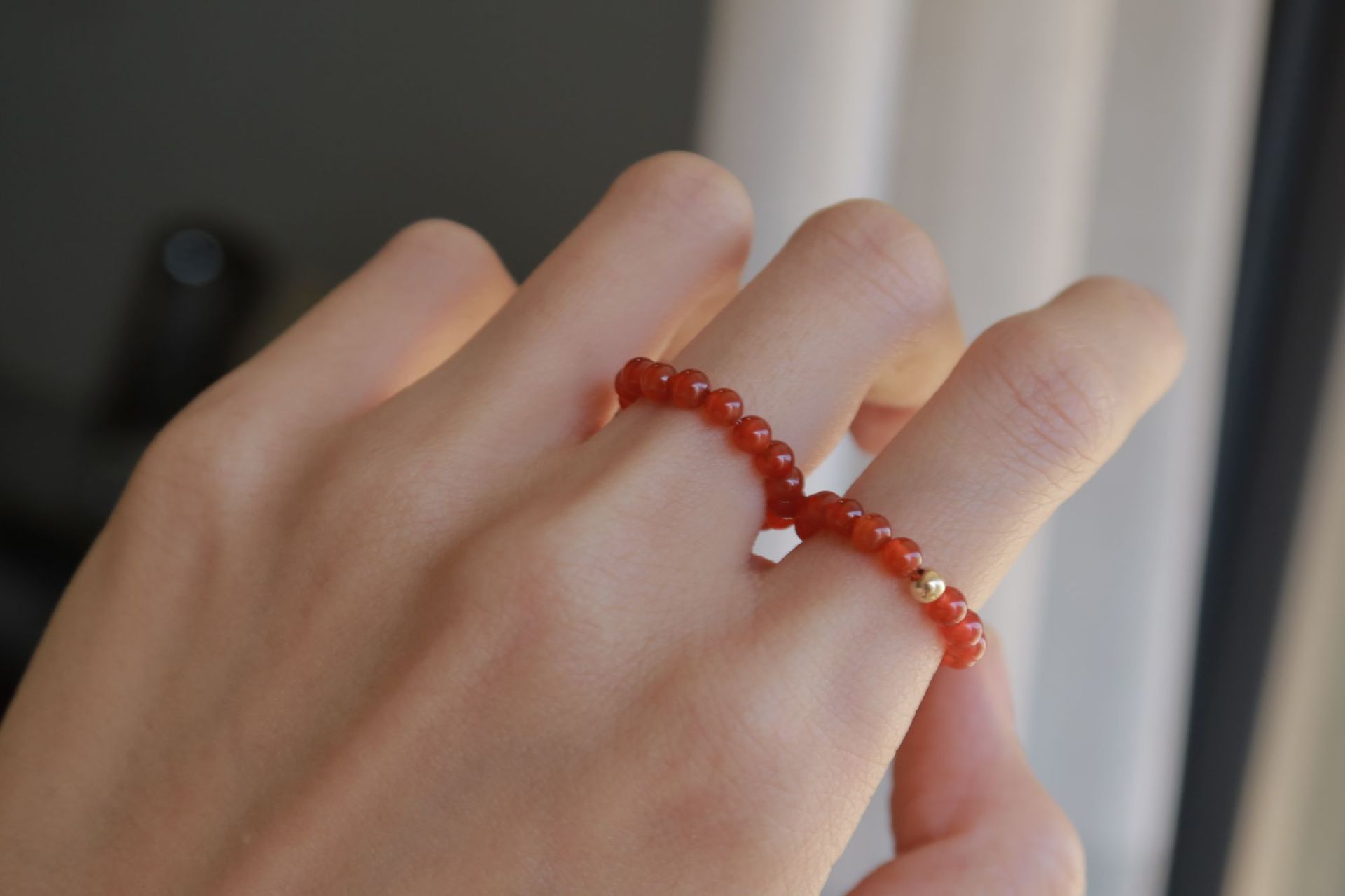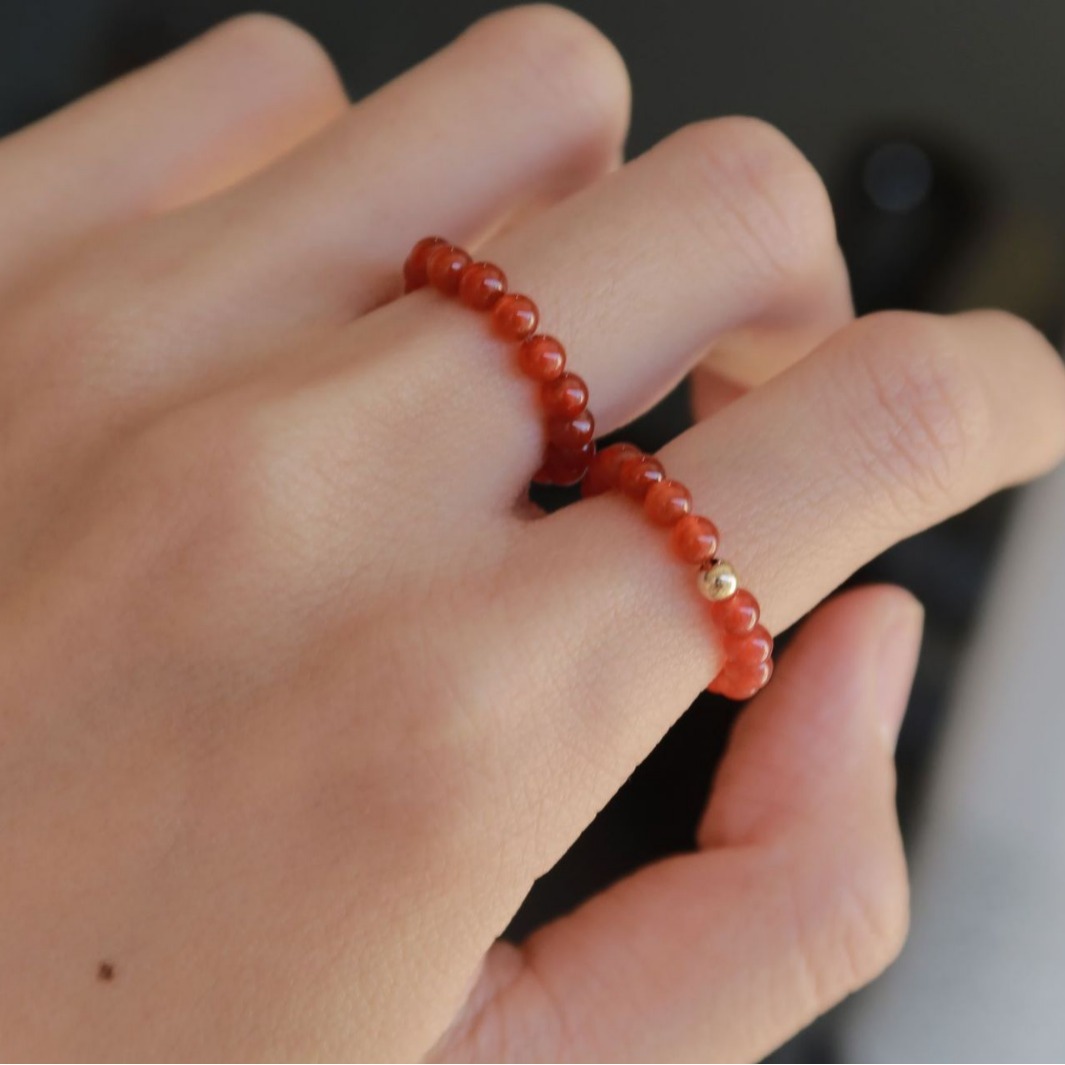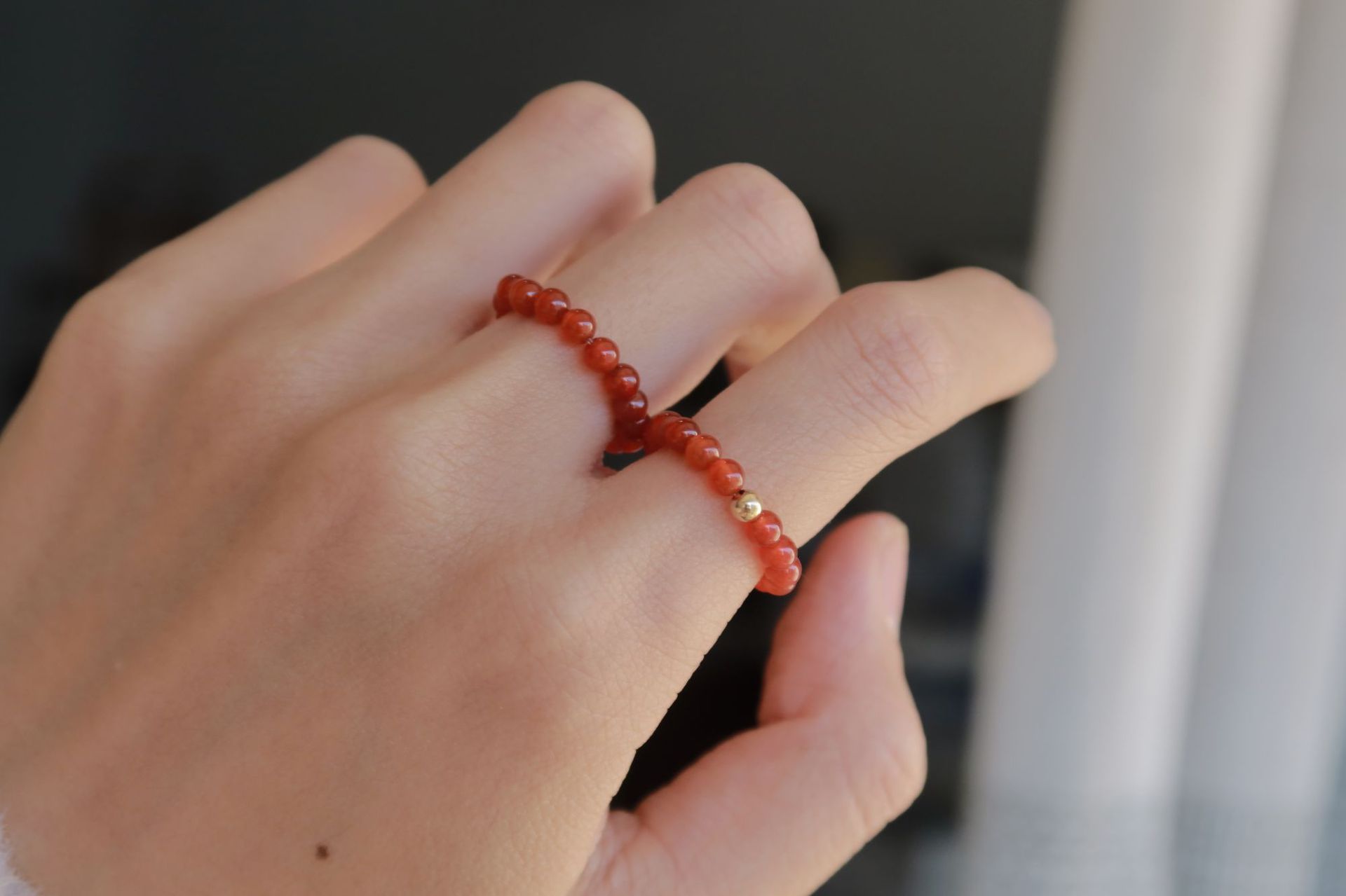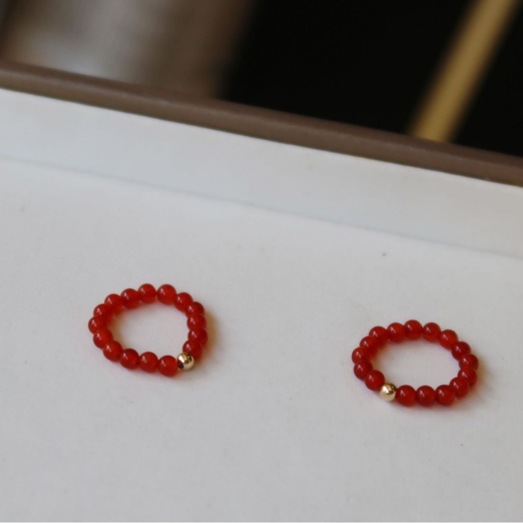 Не выцветает маленький красный агат, золотой бус, переносит национальный стиль, ретро кольцо, бисер простой, дикий красный новый китайский стиль