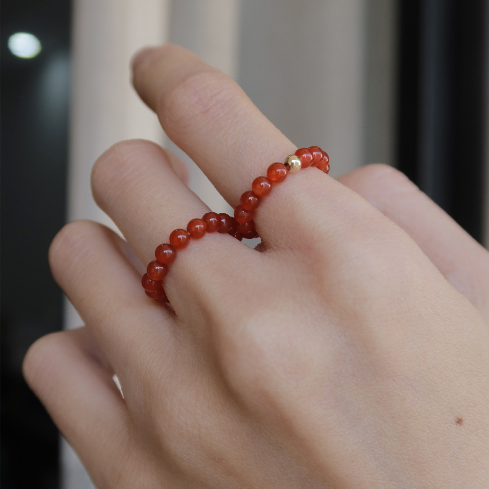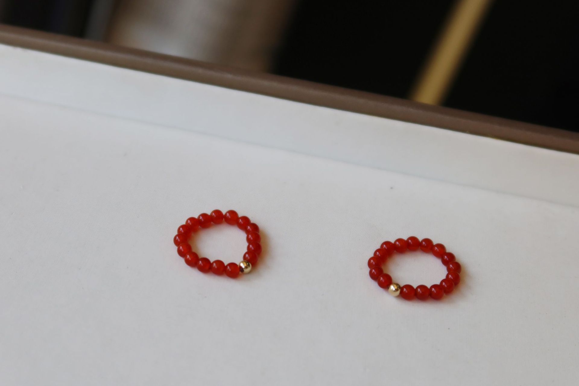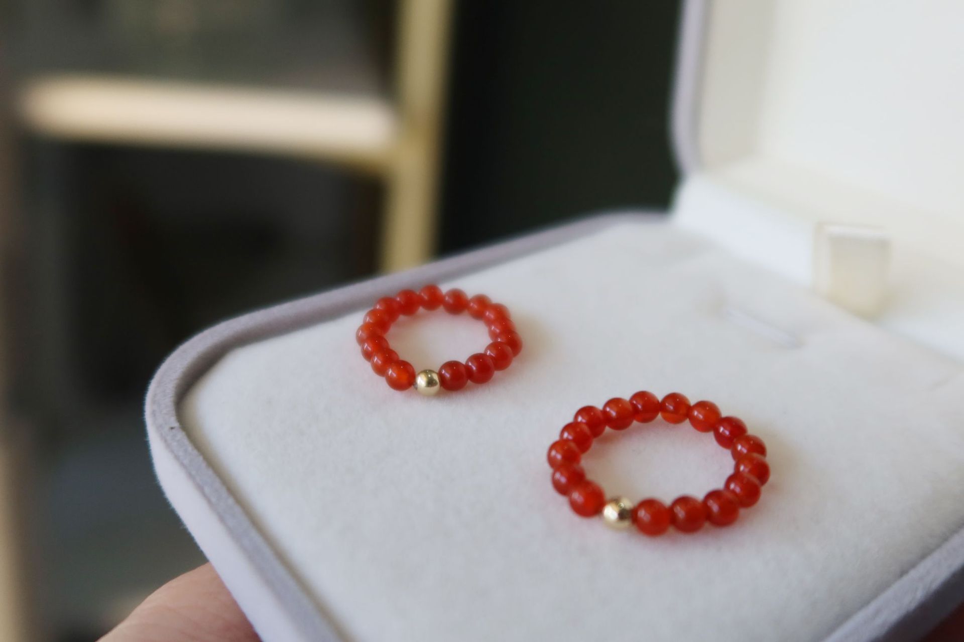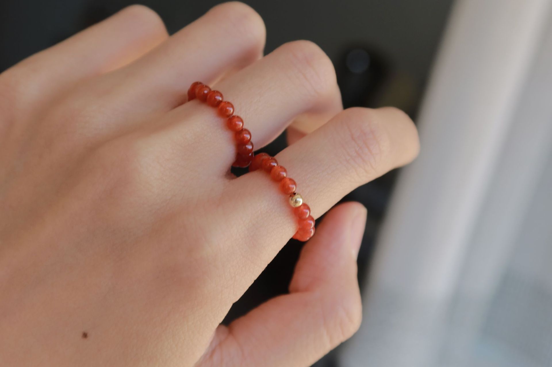 Не выцветает маленький красный агат, золотой бус, переносит национальный стиль, ретро кольцо, бисер простой, дикий красный новый китайский стиль