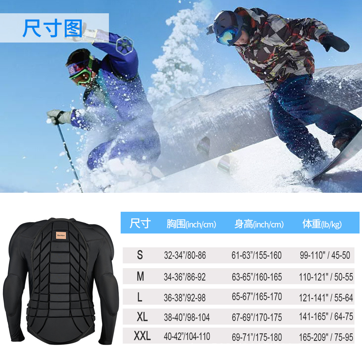 Защитная экипировка BenKen для взрослых (мужская и женская): облегающая, теплая, с длинными рукавами, для катания на коньках и лыжах, с защитой от ударов и падений.