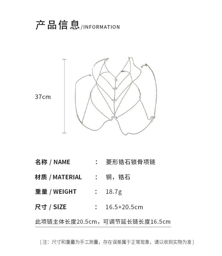 Вспышка циркониевой кисточки ожерелье женский летний прилив крутая горячая девушка тело цепь груди цепь все тело сексуальная бикини трехмерная спина цепь