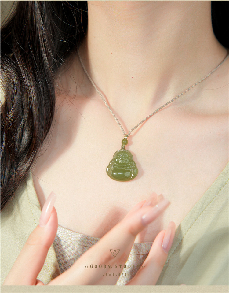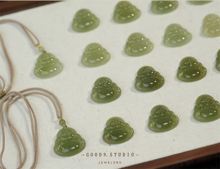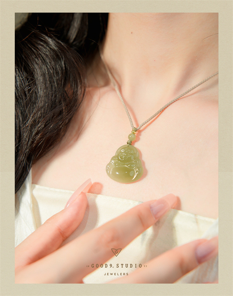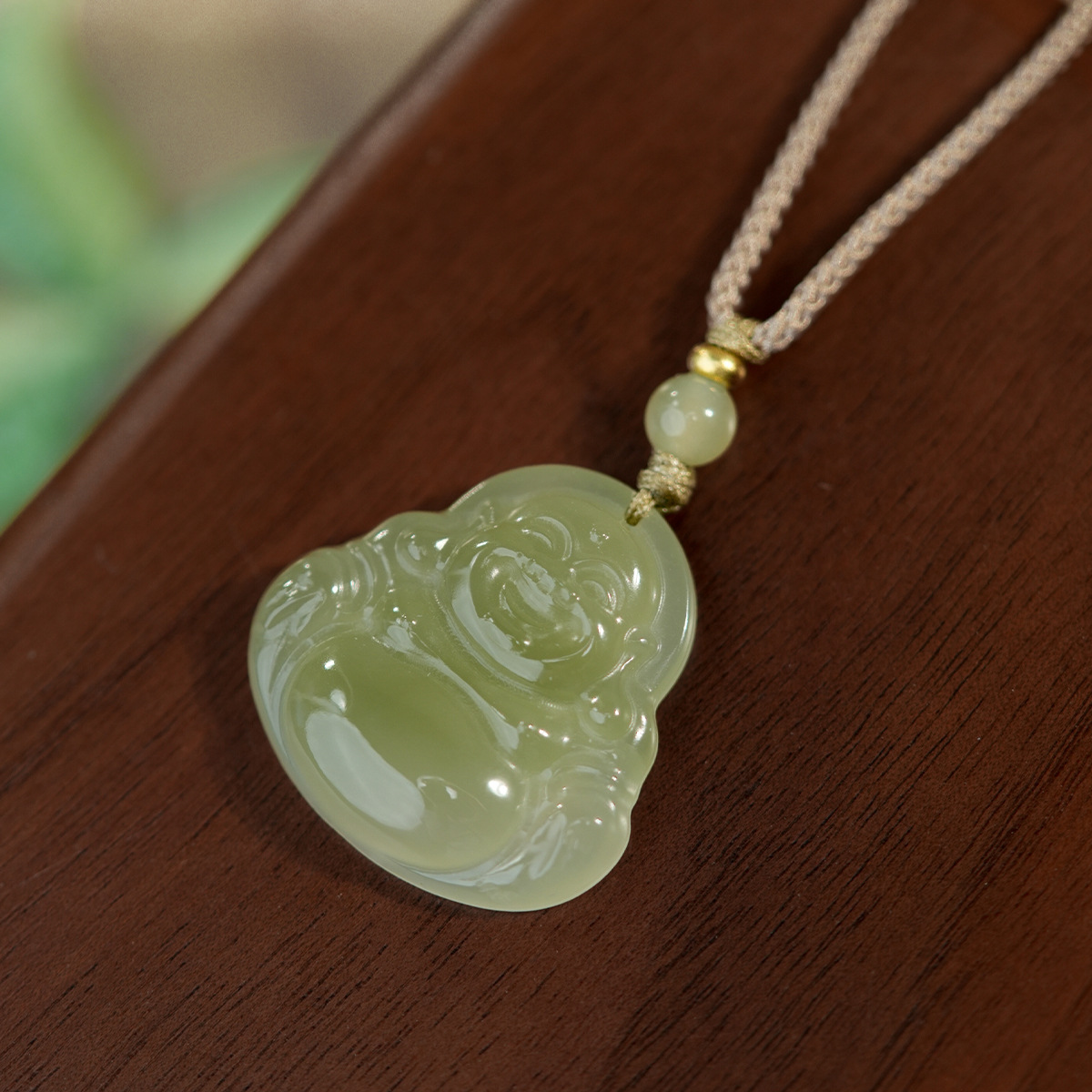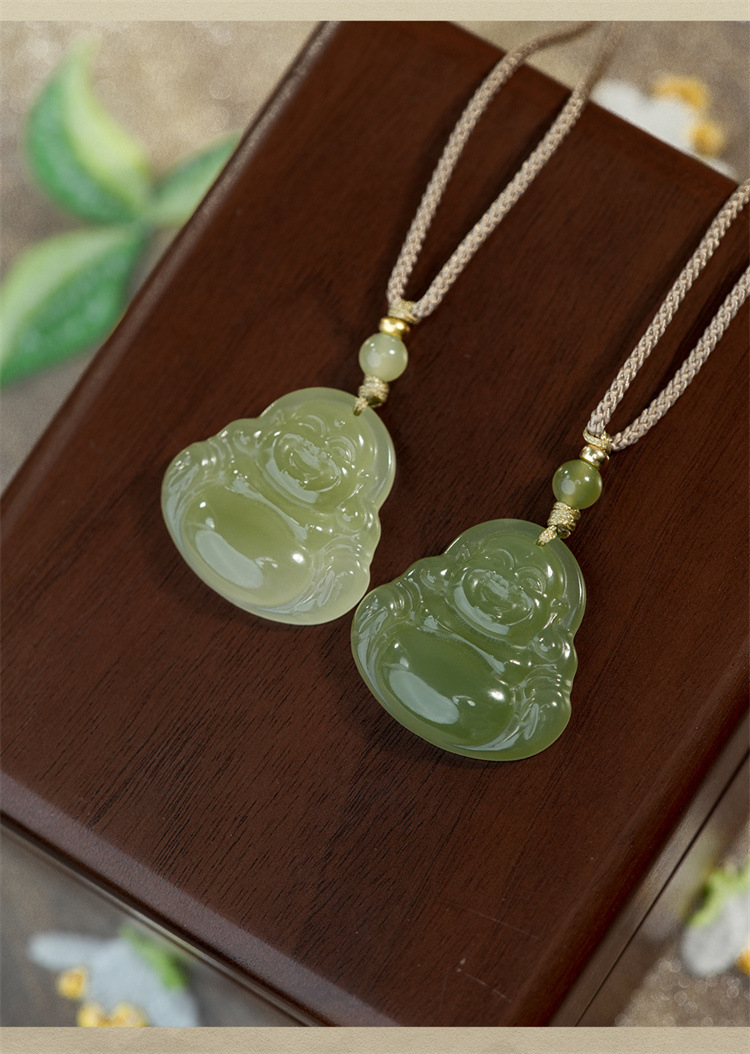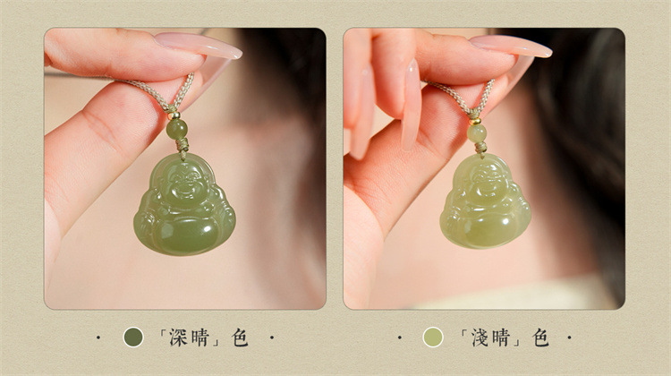 Производитель оптом афганский нефрит мелкая вода Майтрейя улыбается Будда подвеска глубокая солнечная вода односторонняя буддийская нефритовая подвеска цепочка ключицы