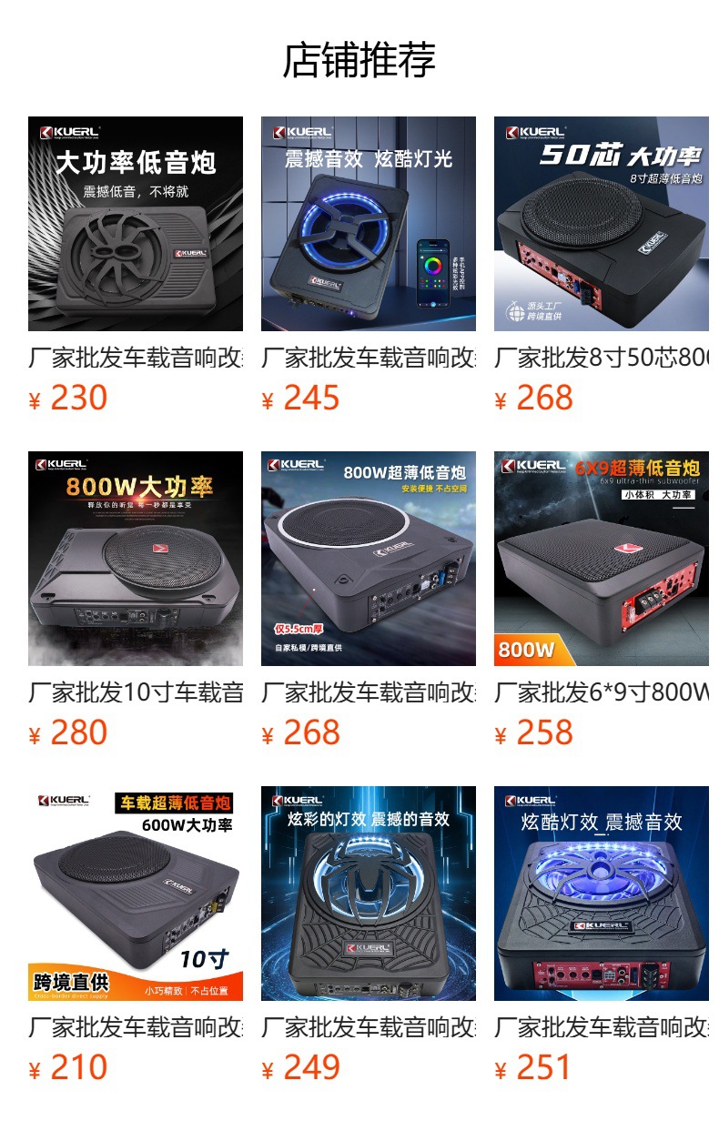 Производитель оптовой автомобильной аудио модифицированный паук с лампой 10-дюймовый мощный активный автомобиль ультратонкий сабвуфер