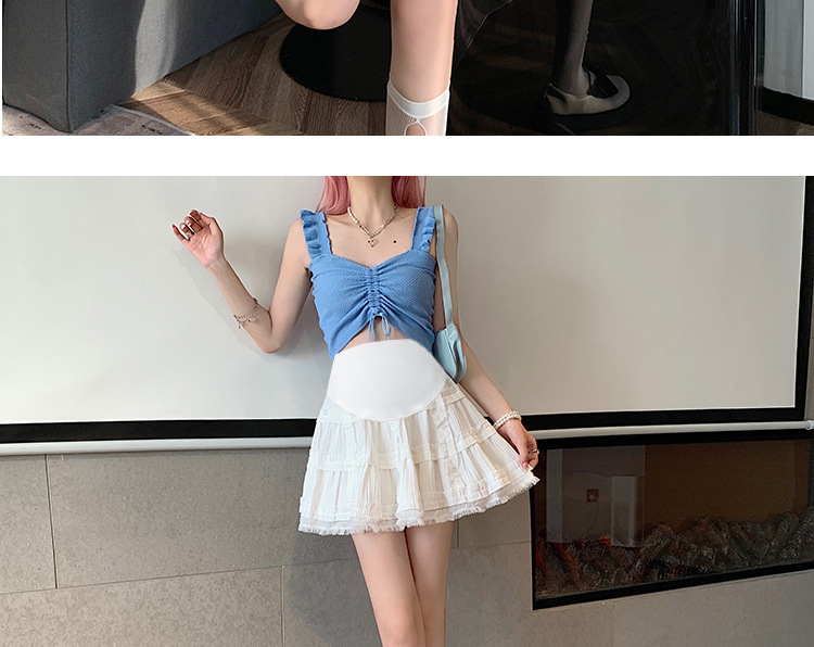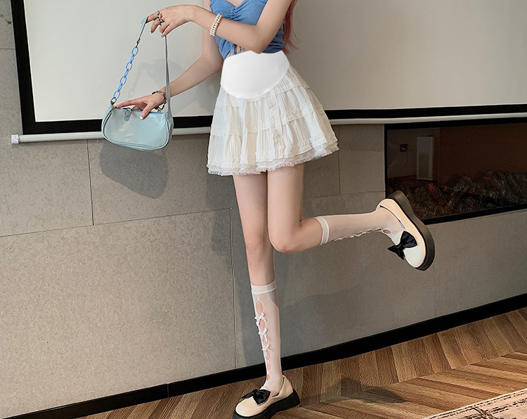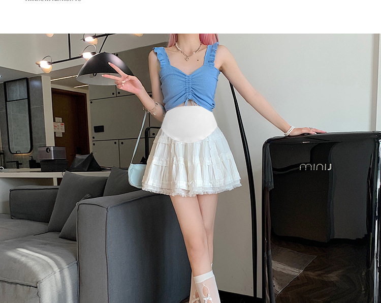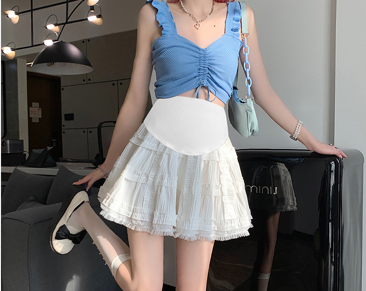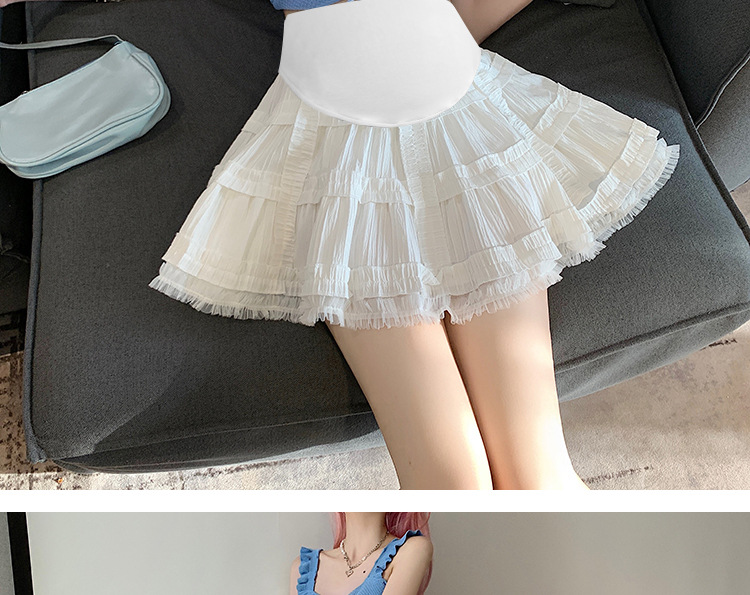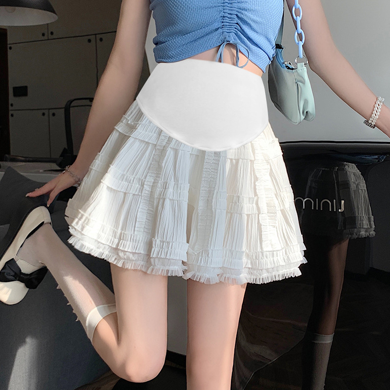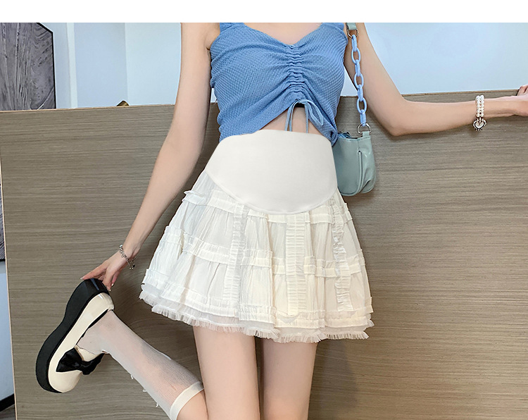 Короткая юбка для беременных летом старомодное чувство ретро плиссированная юбка-юбка летнего среднего и длинного живота торт юбка анти-свет