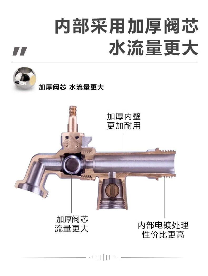 Утолщенный одиночный выходной патрубок с большим расходом; Утолщенный двойной выход - выход воды с большим расходом; Медного цвета утолщённый одиночный выход - большой потоковый выход; Медного цвета утолщённый двойной выход - большой потоковый выход