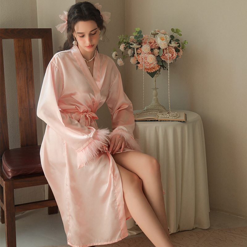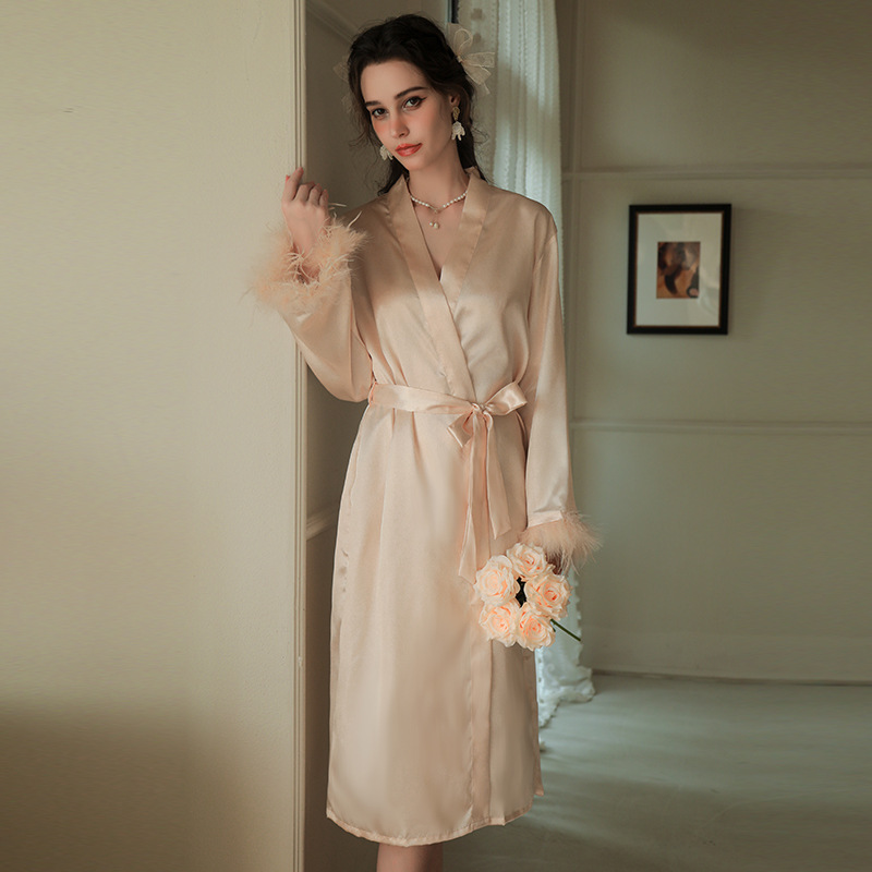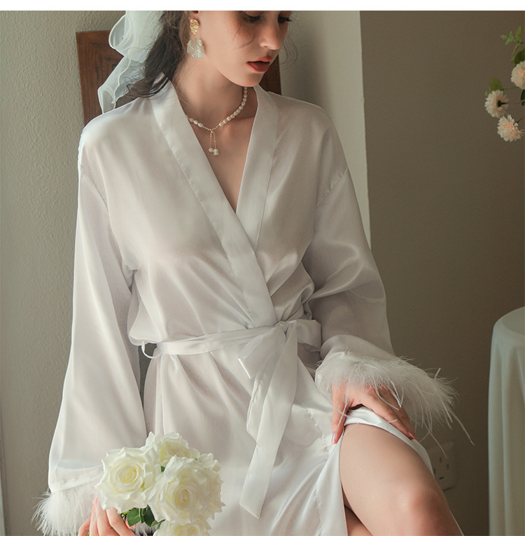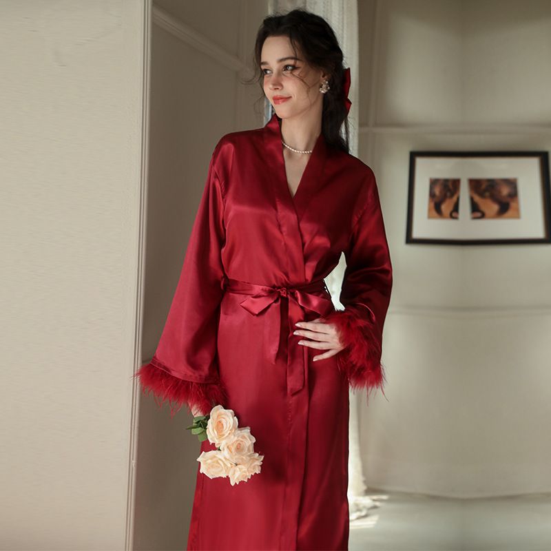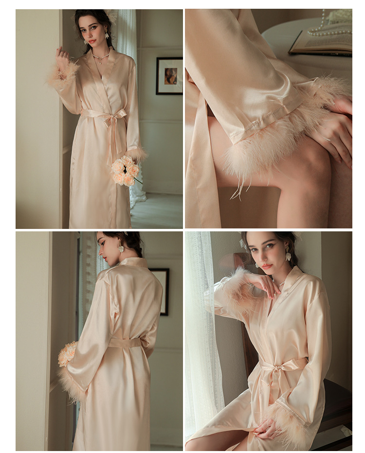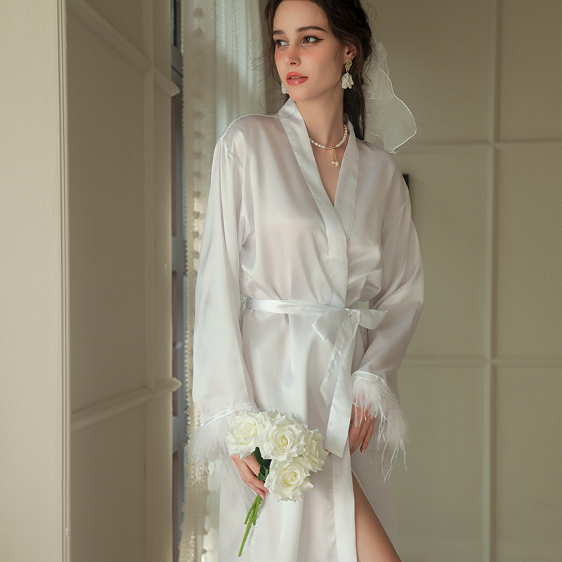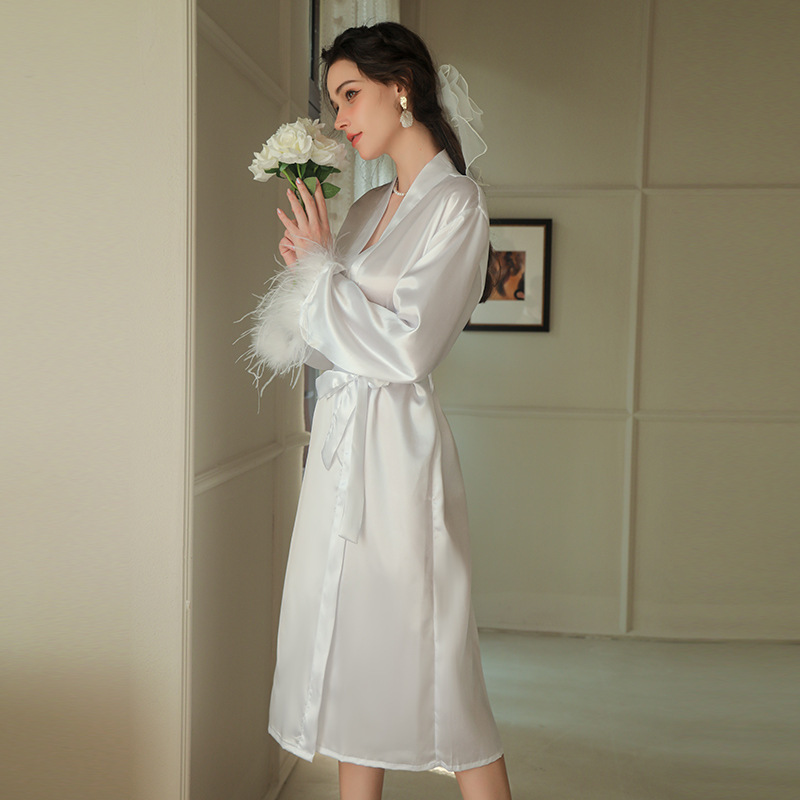 Трансграничные европейские и американские невесты утренний халат дамы перья длинные халат свадебный макияж подружки невесты