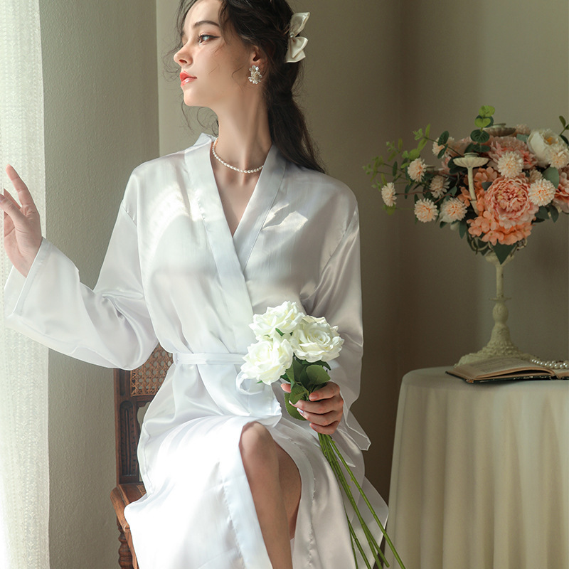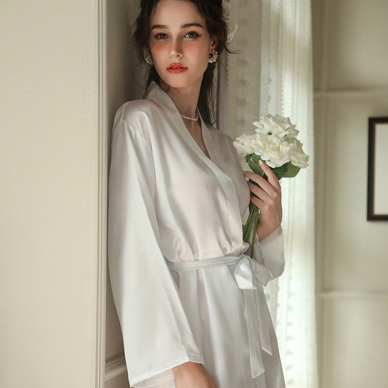 Трансграничные европейские и американские женские симулированное шелковая ночная одежда свадебный макияж халат тонкий кардиган халат невеста утренний халат