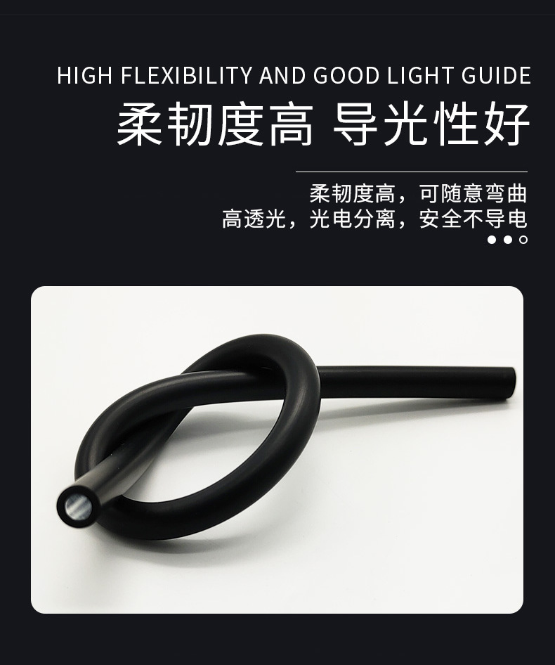 Черный кожаный волоконно-оптический внутренний диаметр 2,0 наружный диаметр 3,0 мм Медицинский проводящий свет задний фонарь обнаружения оборудования для передачи света мягкий оптический