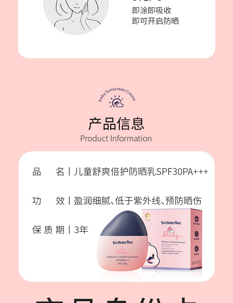 Детский солнцезащитный крем Big Bird SPF30PA +++ Детский солнцезащитный лосьон Увлажняющий изоляционный анти-УФ Прямые продажи с фабрики