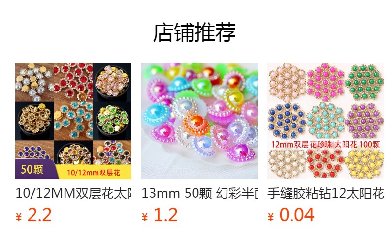 水钻太阳花,平底的无孔,需要另外用胶水粘。请以50的倍数起拍,拍多份相同款可能装一起,并不一定是系统设置的50个一包。