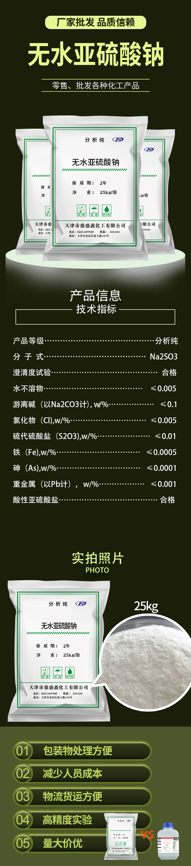 Анидросульфит натрия, аналитический чистый реагент AR 25kg / мешок, аналитическая чистая большая упаковка, оптовая продажа, Тяньцзинь