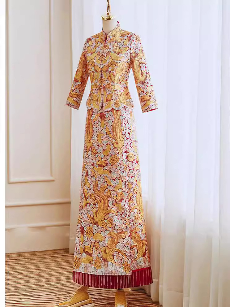 Платье для невесты «Дракон и Феникс», наряд для свадебной речи, платье Сюхэ 2025, облегающее свадебное платье, традиционный китайский стиль для миниатюрных женщин.