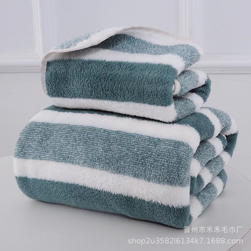 2024 Трансграничная окантовка широкая полоска полотенце Домашнее полотенце для взрослых впитывает воду, мягкое и не легко вытирает волосы, утолщает лицо полотенце