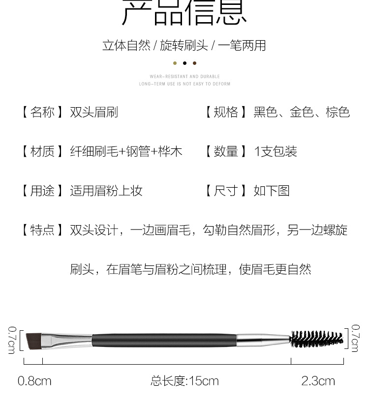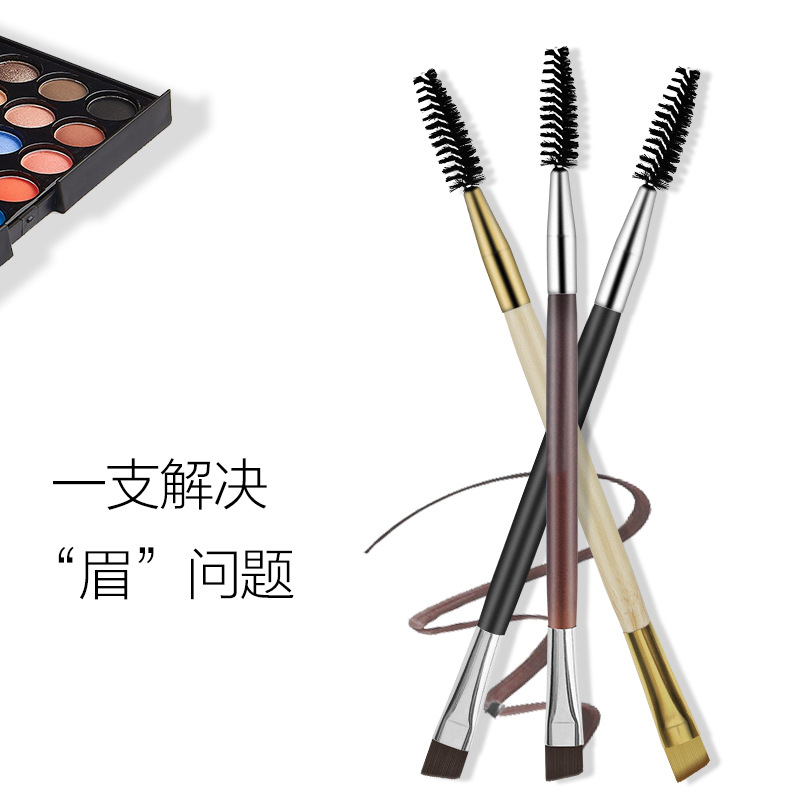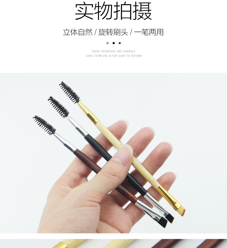 Деревянная двухголовая щетка для бровей-коричневый; Деревянная двухголовая щетка для бровей-черный; Деревянная двухголовая щетка для бровей-бамбуковая ручка