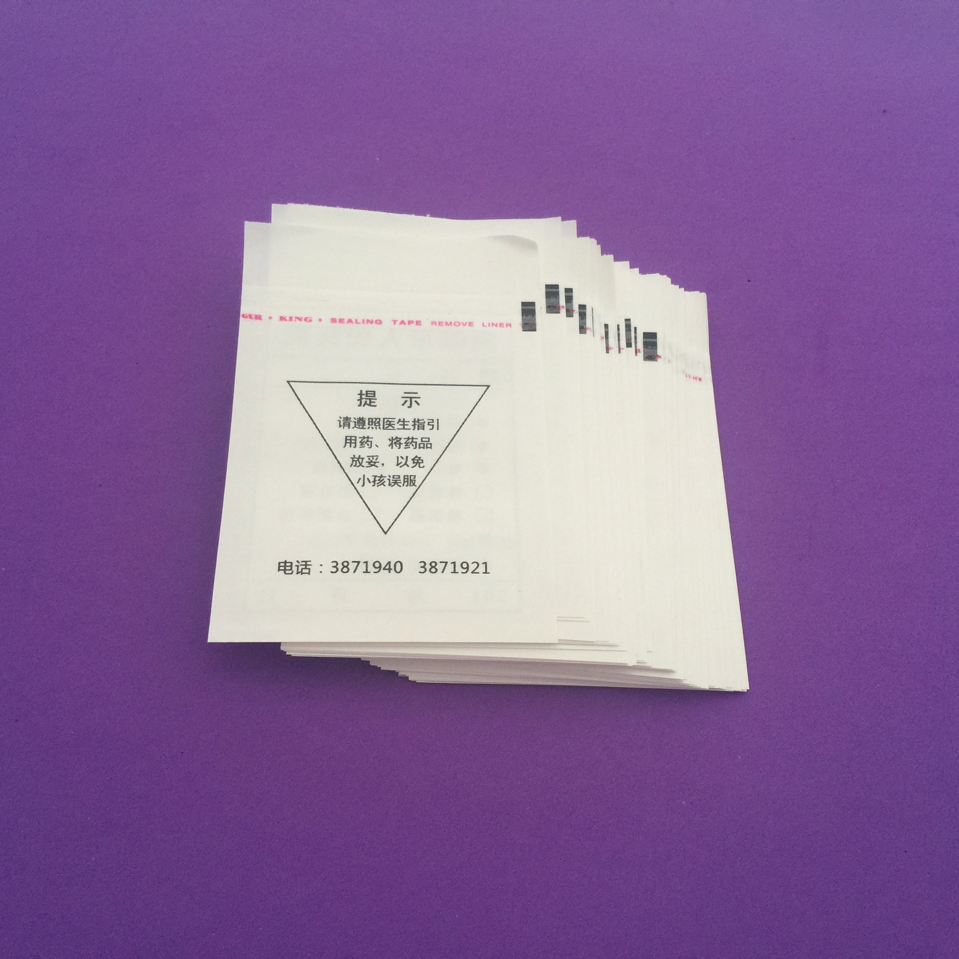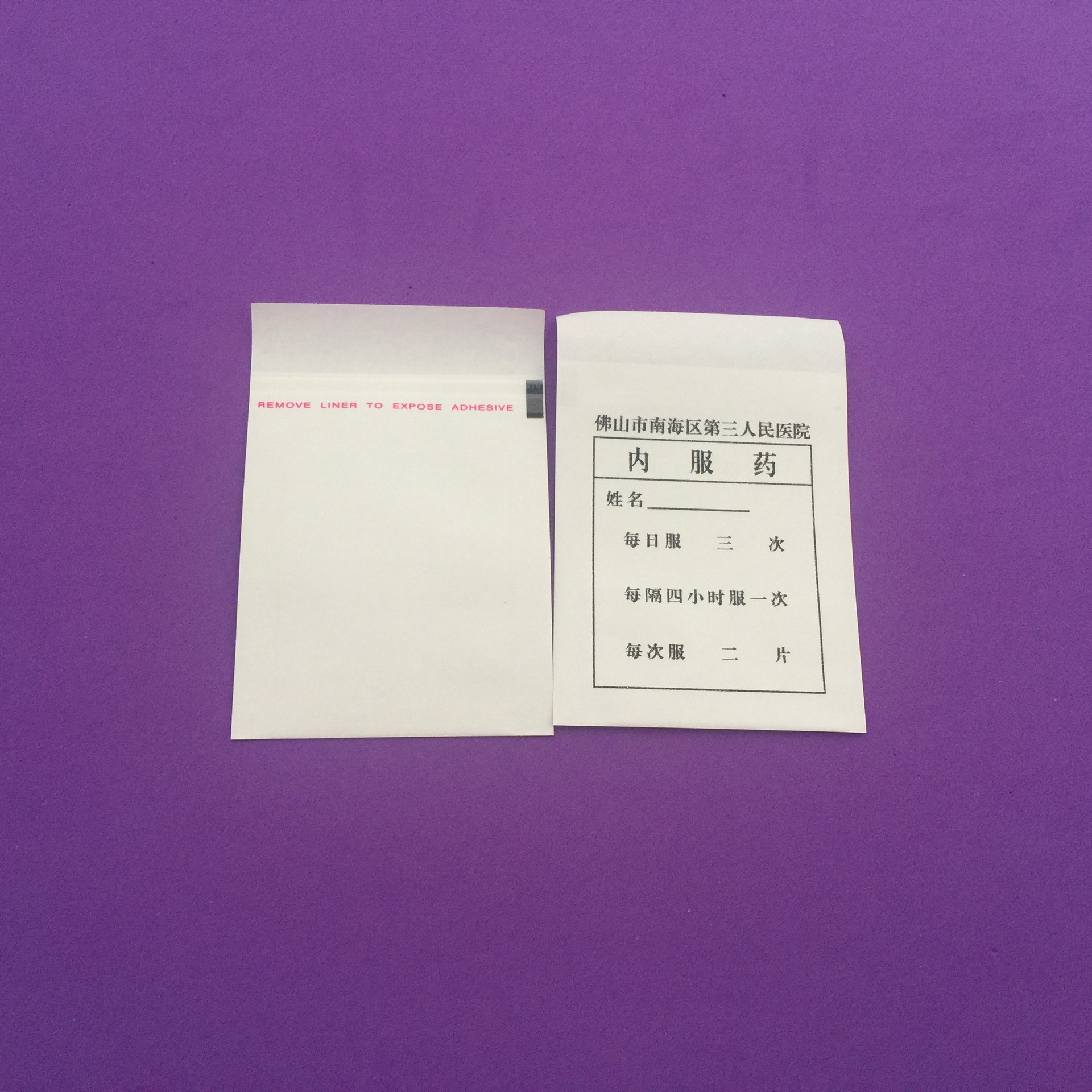 规格:7*10.5 8*12.5 9*13.5 可按照客户要求的尺寸 材质:医药纸 两面覆膜 淋膜纸 可以按照客户需求一面淋膜纸 一面亚光透明膜 厚度:80克医药纸 订货:可以按照客户需求印刷自己LOGO 印刷logo,二维码 地址 特性 : 1. 2.易撕易粘
