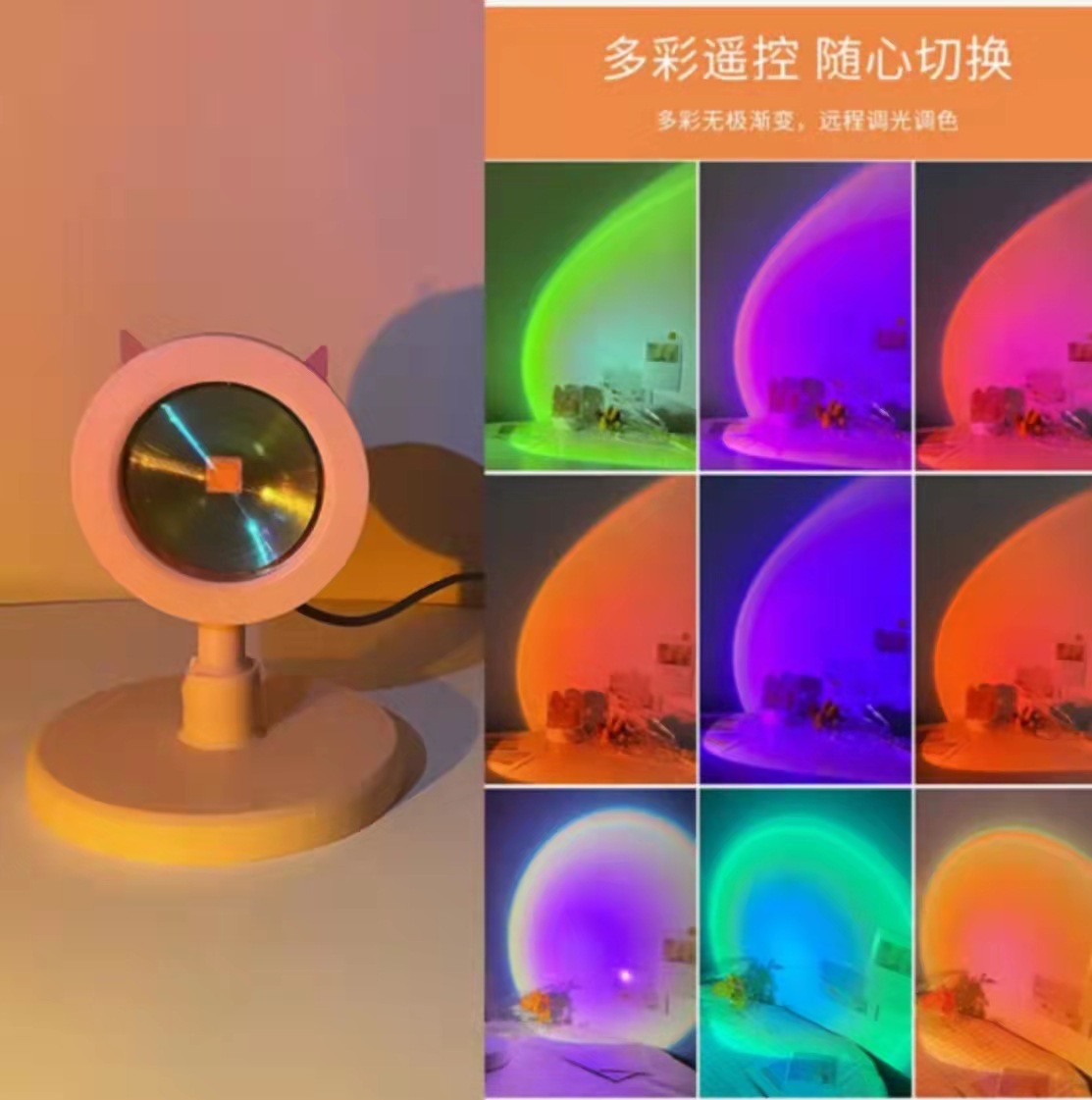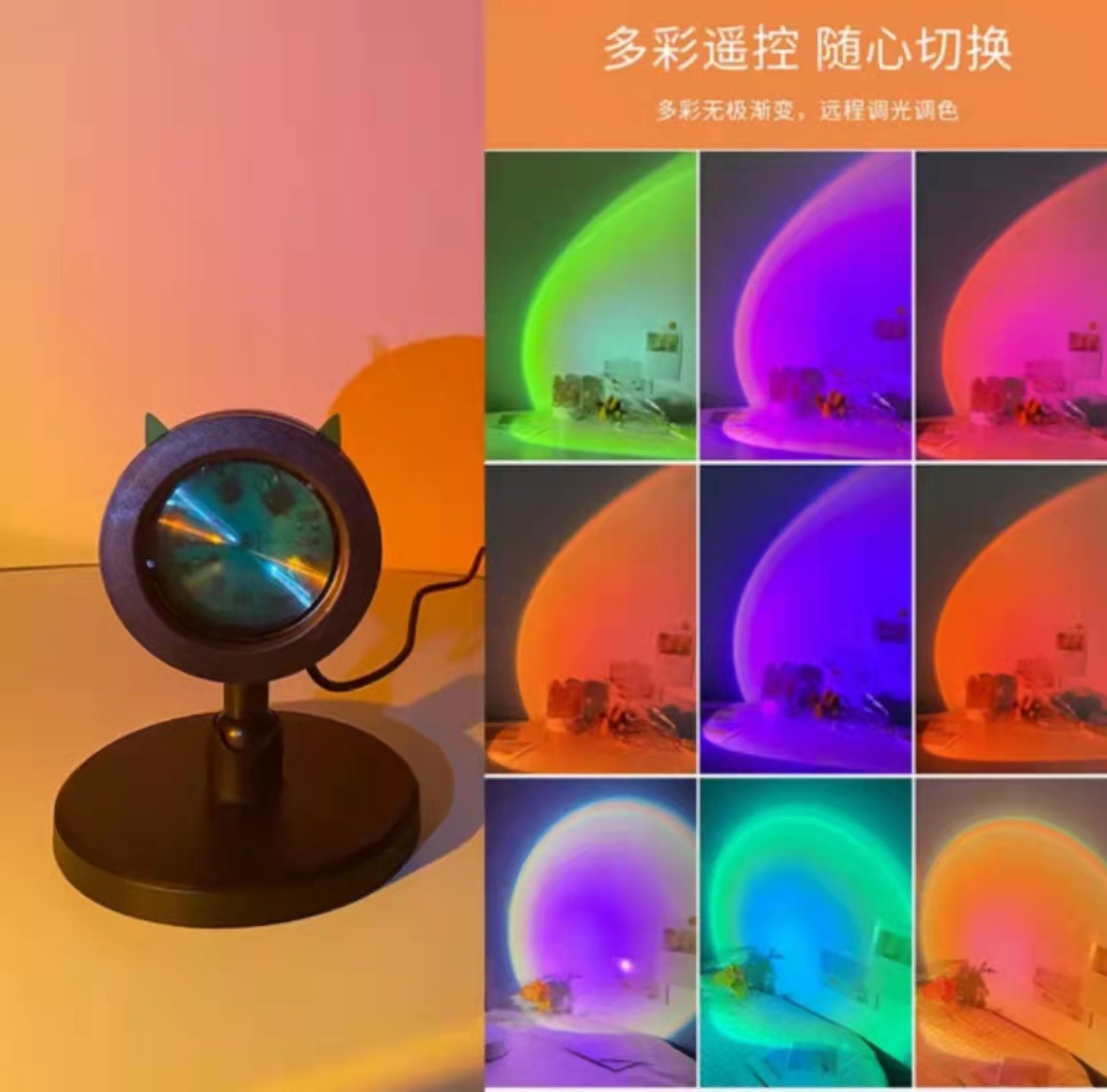 Освещение заката Освещение Закат Освещение Радуга Семь Цветных Светильников Проектор Сеть Красный Креативный USB Live Фоновый Светильник