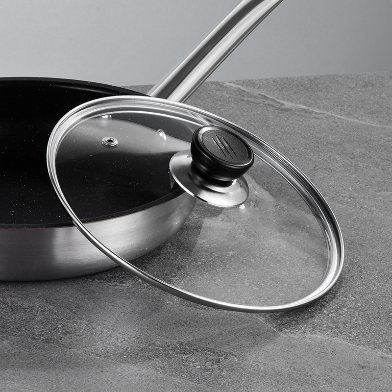 Прямые поставки с фабрики, крышка из закаленного стекла G-типа, оптовая продажа, круглая бытовая кастрюля из нержавеющей стали, стеклянная крышка вока, взрывозащищенная