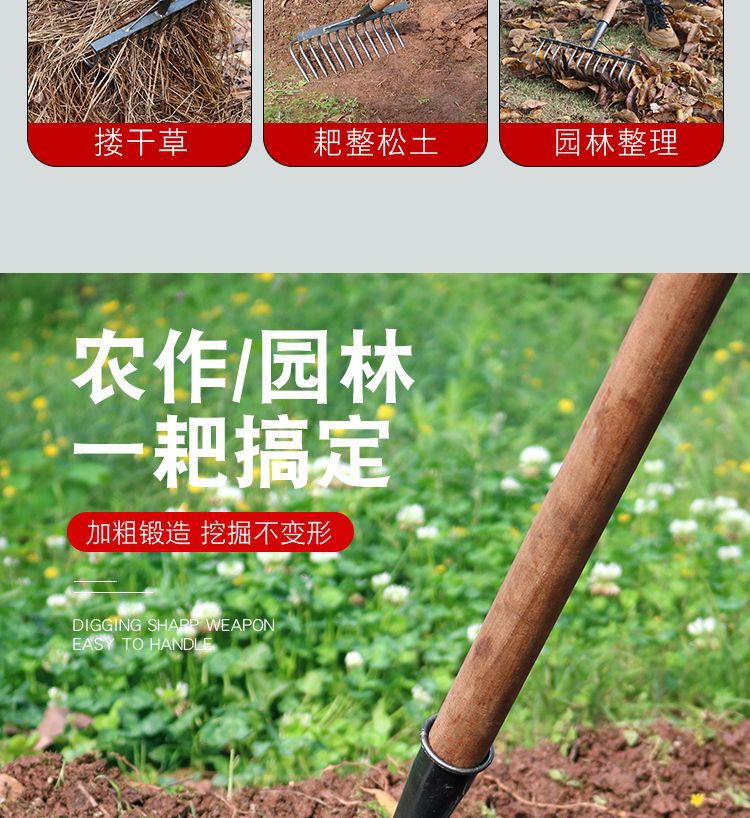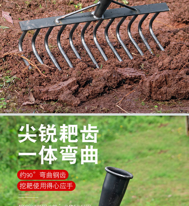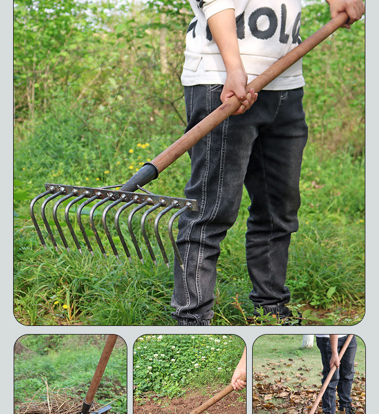 Сутолщенные большие изогнутые грабли 4 зуба; Сплошная утолщеная большая изогнутая грабля 4 зубчатая деревянная ручка; Сплошные утолщенные большие изогнутые грабли 7 зубов; Сплошная утолщеная большая изогнутая грабля; Сплошные утолщенные большие изогнутые грабли 9 зубов; Прочные утолщенные большие изогнутые грабли с 9 зубьями и деревянной ручкой; Сутолщенные большие изогнутые грабли 12 зубов; Сплошная утолщеная большая изогнутая грабля 12 зубчатая деревянная ручка
