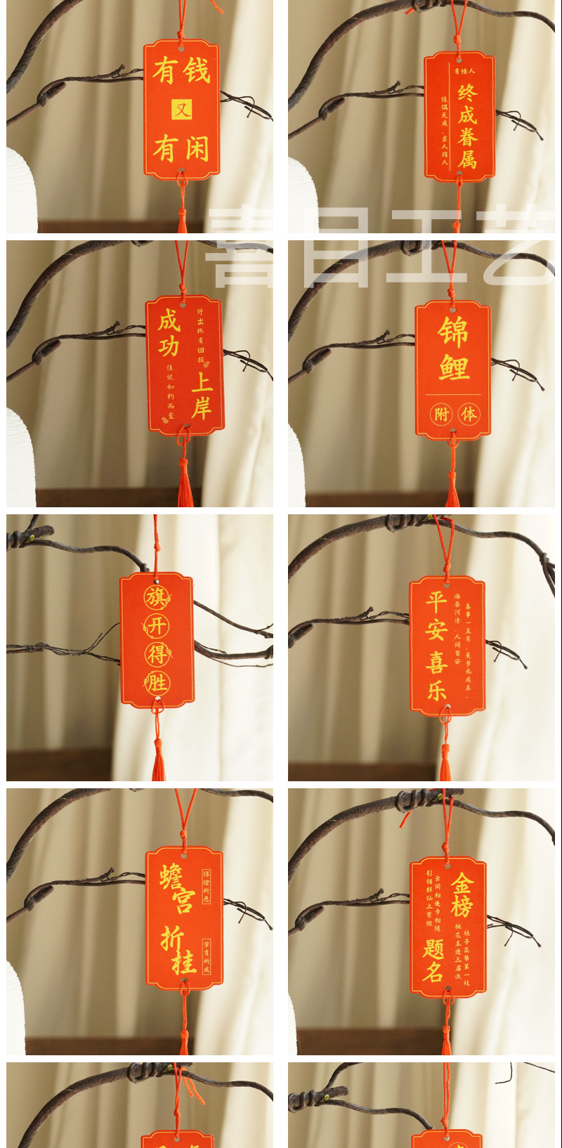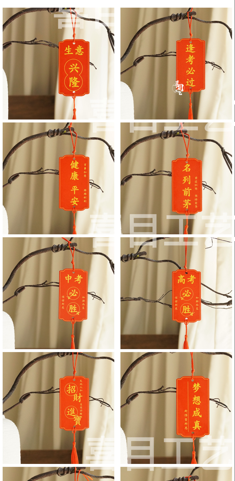 Обязательно выиграть для изучения входа в колледж; Должен выиграть для экзамена входа в среднюю школу; Тодровый двор Сложенный Гей; успешно приземлен; Должно пройти каждый экзамен; Здоровый и счастливый; Здоровый и безопасный; Заголовок золотого списка; Кий с телом; Обучаются мечты; Династия Мин; Мир и радость; Флаг хорошо открыт; Светлое будущее; на каждый день богатый; Бизнес процветает; Все идет хорошо; Все ваши пожелания воплощаются в жизнь; Получайте деньги и отдых; привлечь богатство; Последние вещи; пустой
