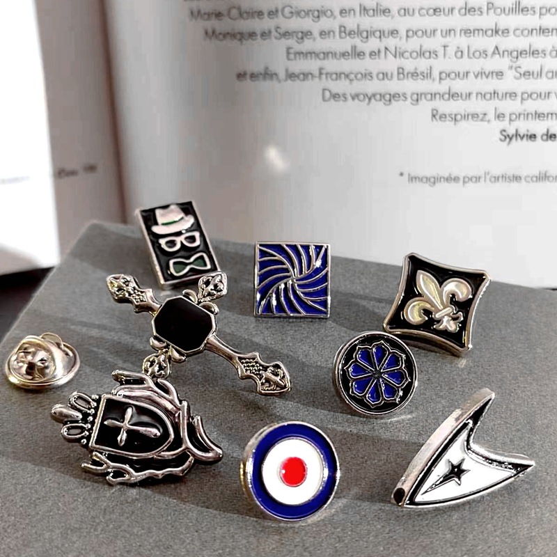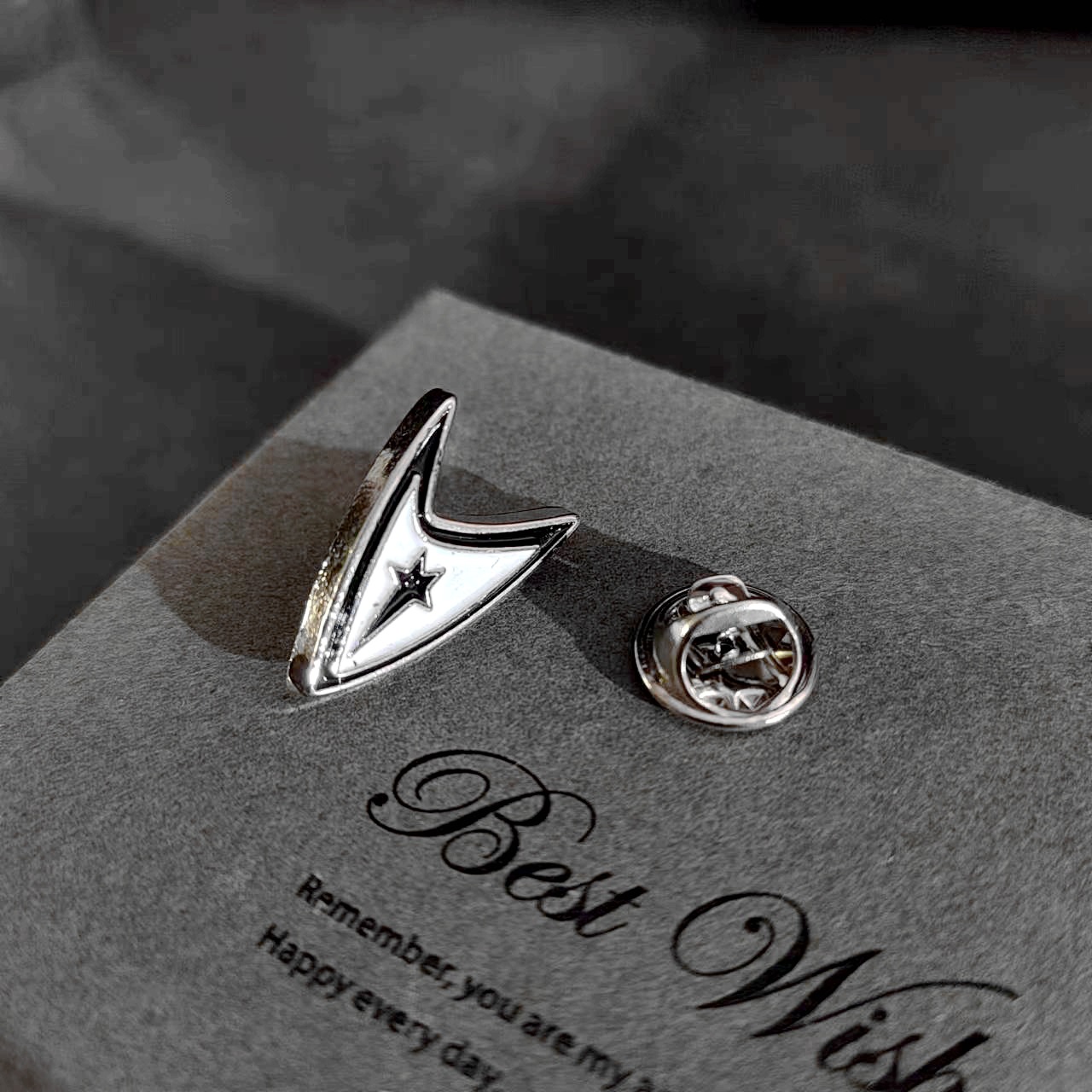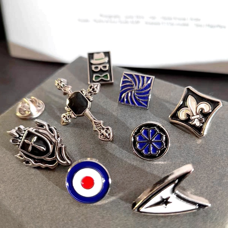 JM Серебряная металлическая краска серии костюм-воротник рубашка униформа этикеткой компании брошь