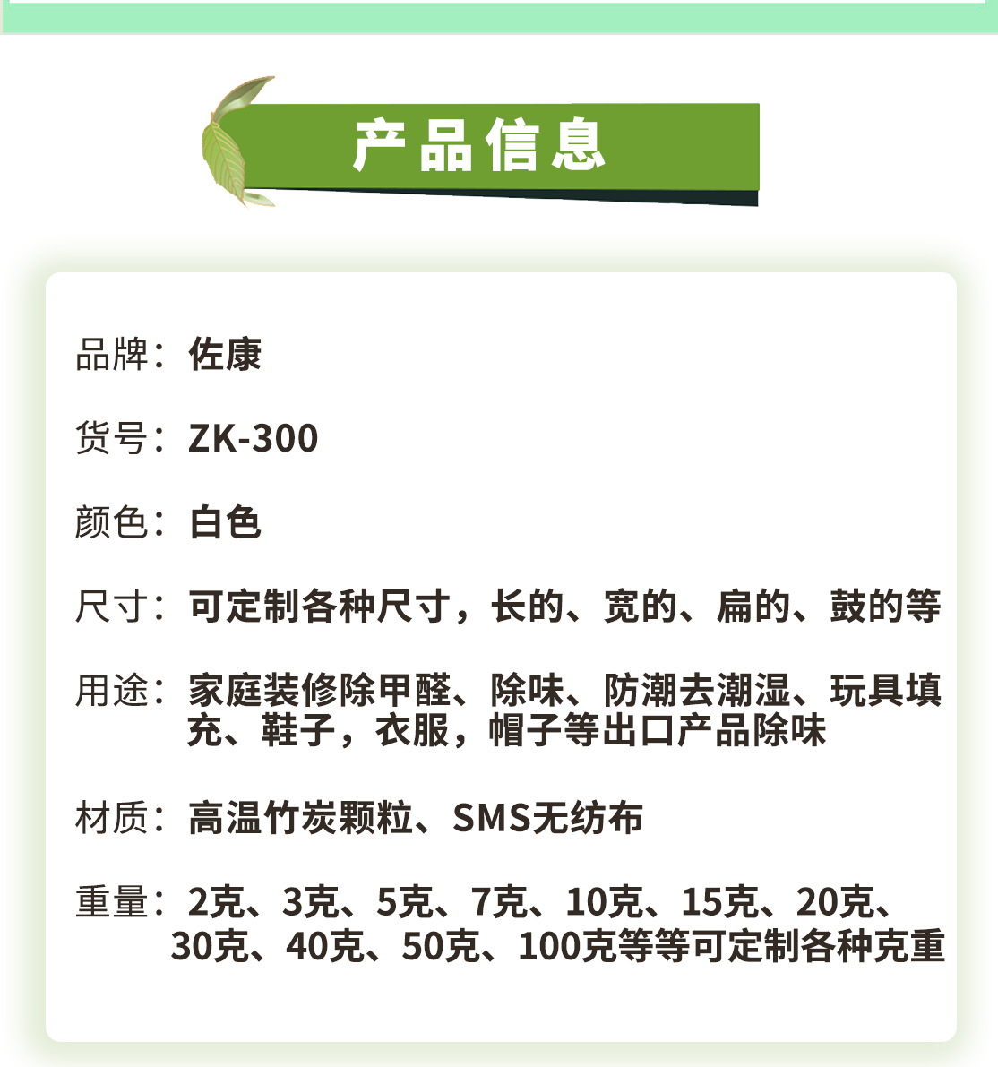 2g活性炭包,5g活性炭包,7g活性炭包,10g活性炭包,20g活性炭包,30g活性炭包,40g活性炭包,50g活性炭包,70g活性炭包,75g活性炭包100g活性炭包,200g活性炭包.500g活性炭包