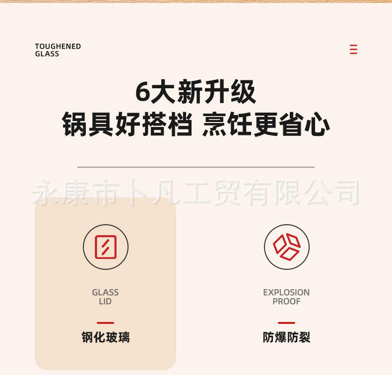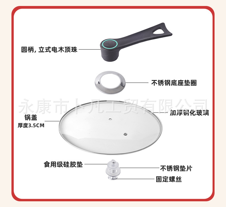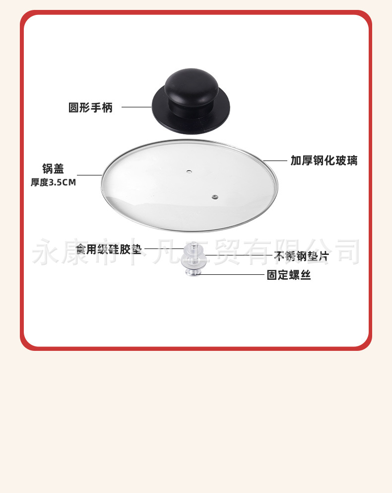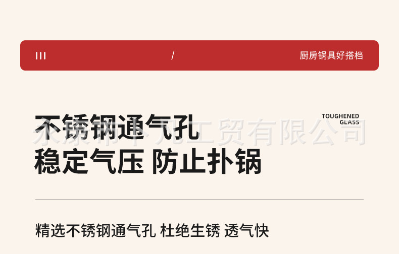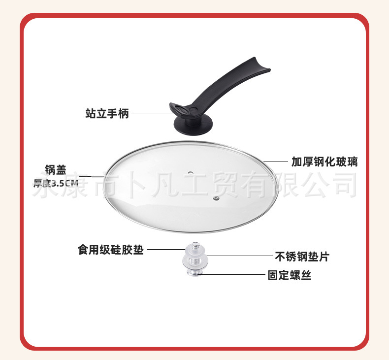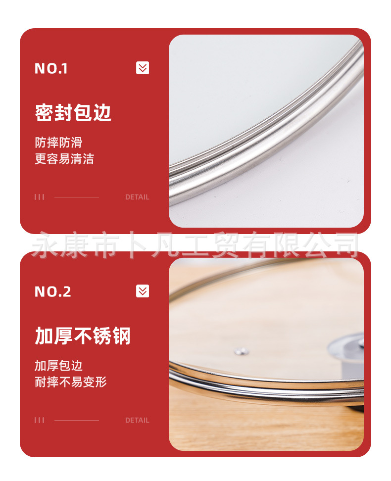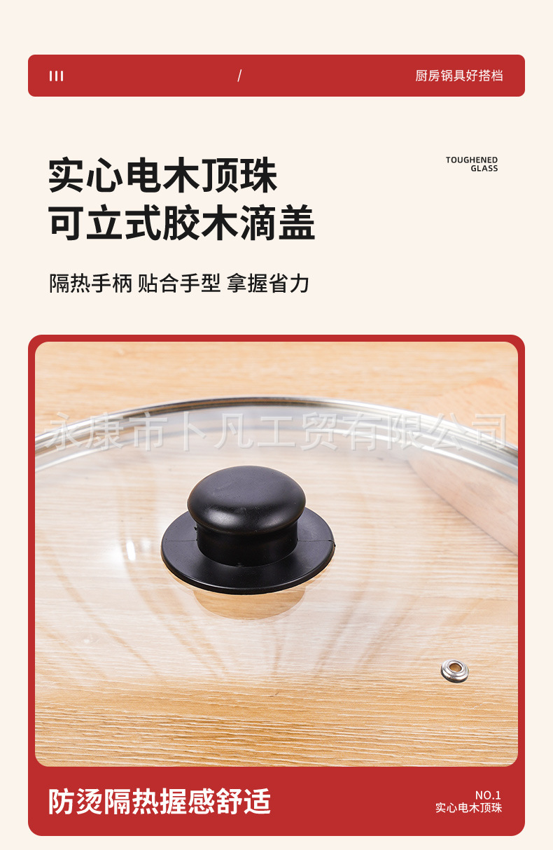 公司承接各种型号样式玻璃锅盖生产定制。G型盖、茶色盖、硅胶盖等,适合汤锅,奶锅,煎盘,炒锅等各式各样的锅,高度钢化玻璃盖,抗压,抗摔,更耐用,可视化透明玻璃锅盖,烹饪的全过程清晰可见,经得起时间考验,历久如新!