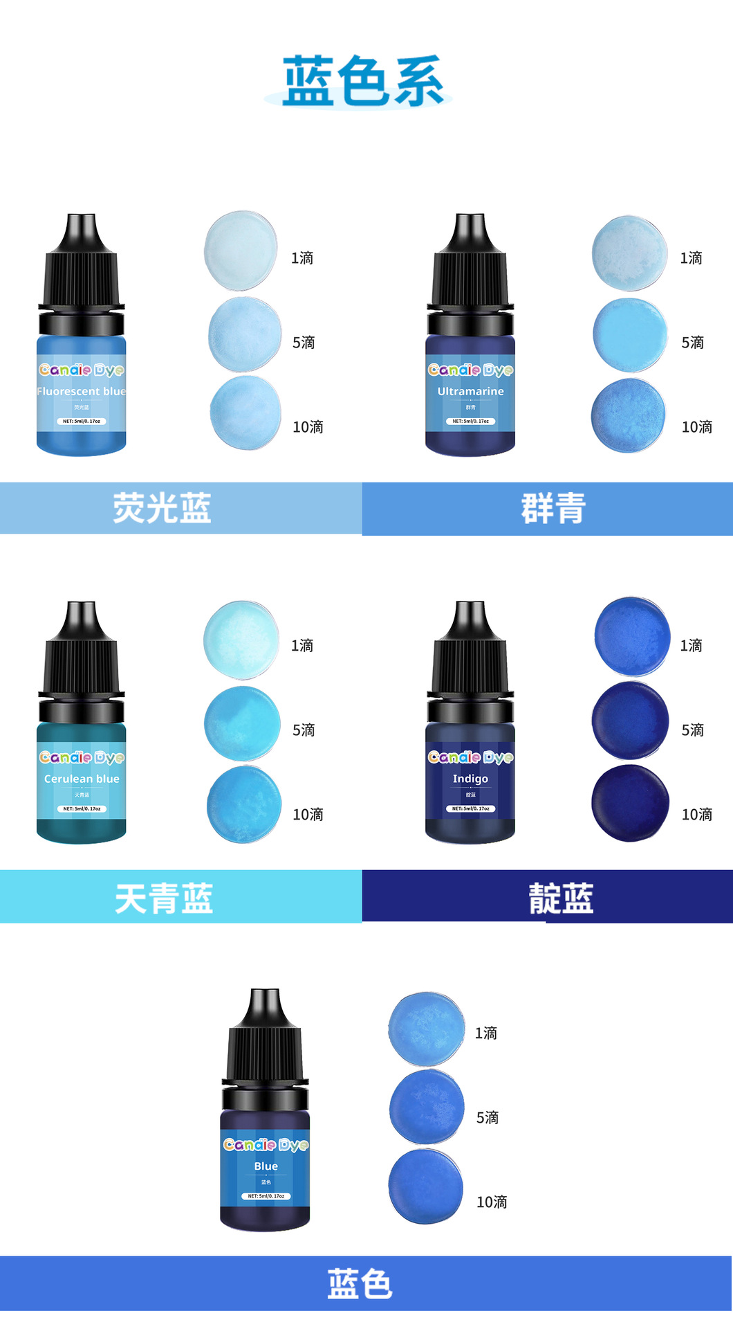 5ml36色蜡烛色精 可用于蜡烛、肥皂、香薰染色 尖嘴小细口,防漏压旋盖。