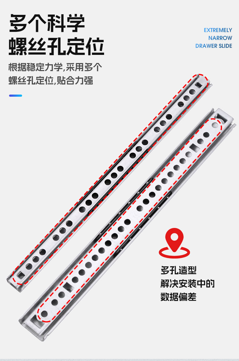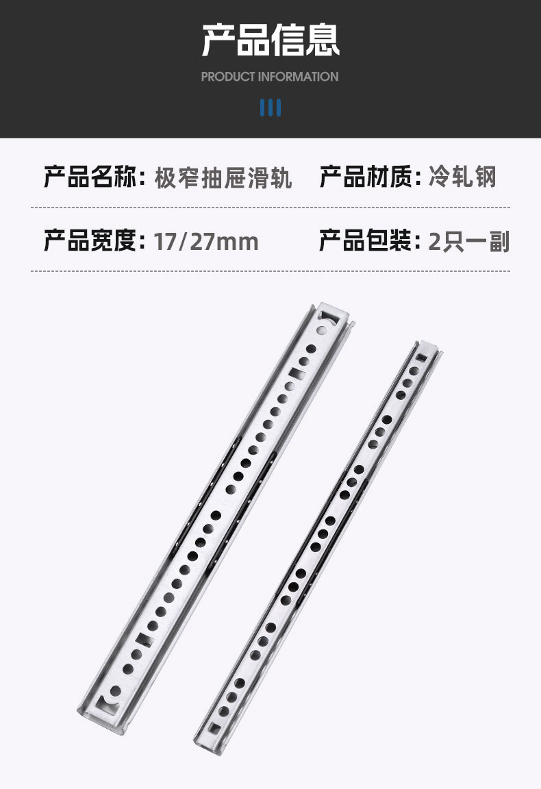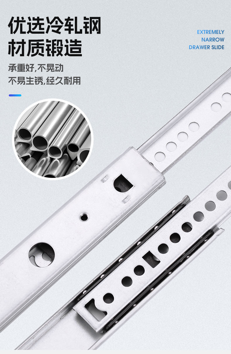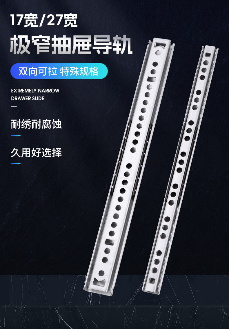 17 мм шириной два узких двунаправленного выдвижного ящика направляющая малая двухсекочная подарочная коробка из стальных шариков