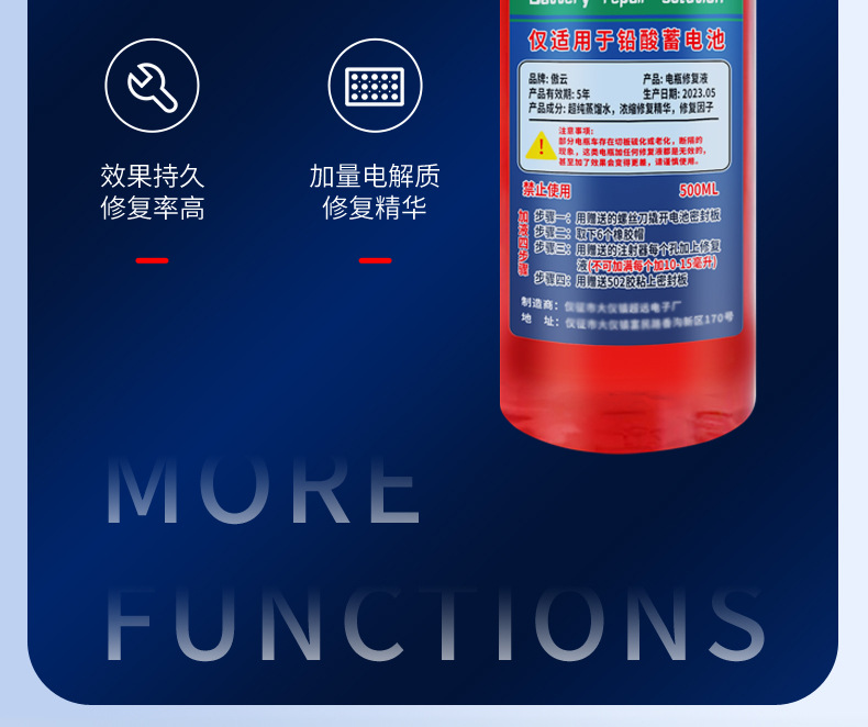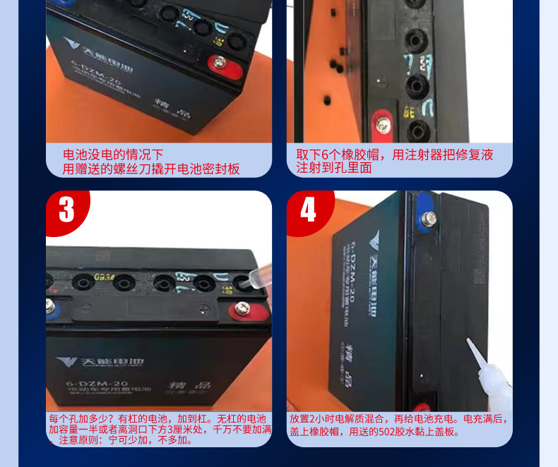 Специальная ремонтная жидкость для аккумуляторов электромобилей, жидкость для пополнения аккумуляторов, оригинальный раствор, специальный электролит для суперсвинцово-кислотных аккумуляторов.